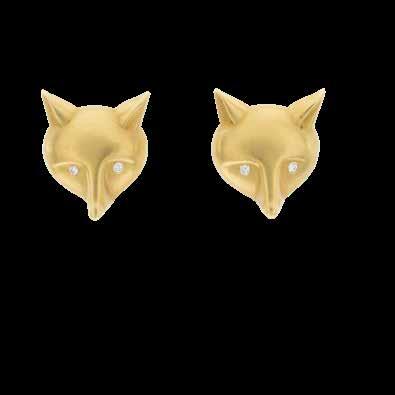 ORECCHINI TESTA DI VOLPE Stati Uniti, firmati Kieselstein-Cord in oro giallo 18kt e diamanti taglio brillante ct 0,10 circa, dimensioni 2,2x1,9 cm. peso 14 gr.