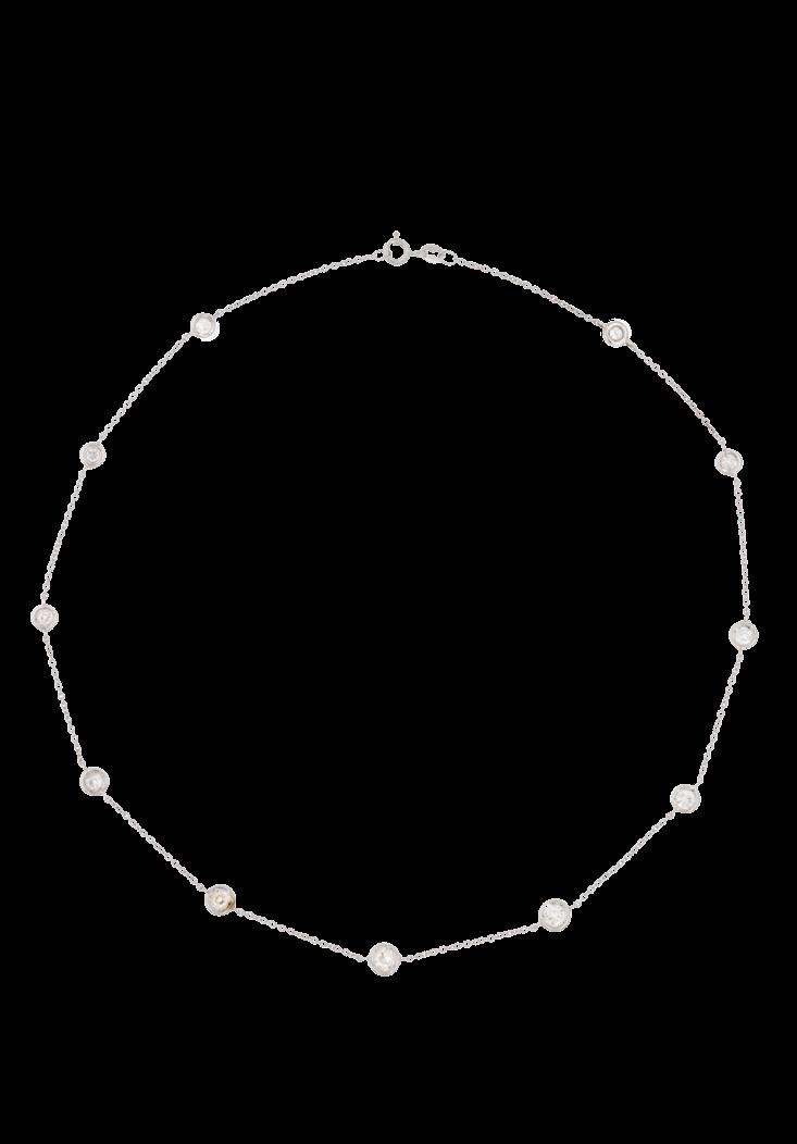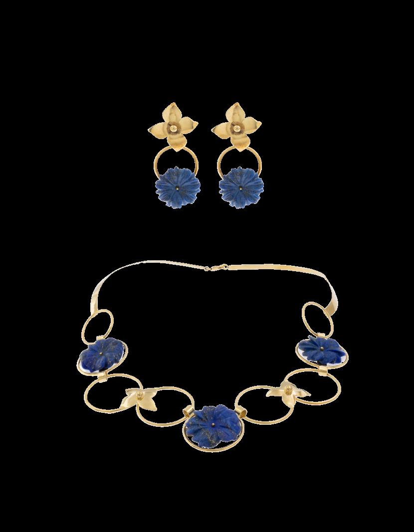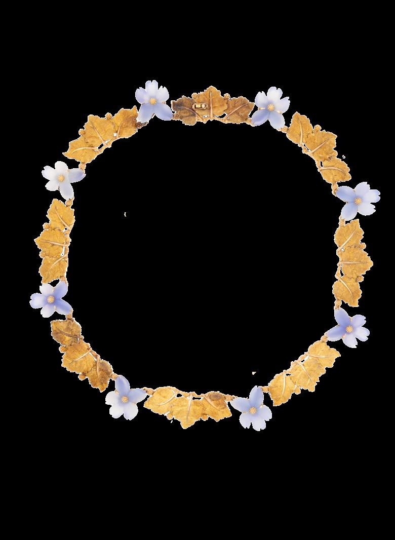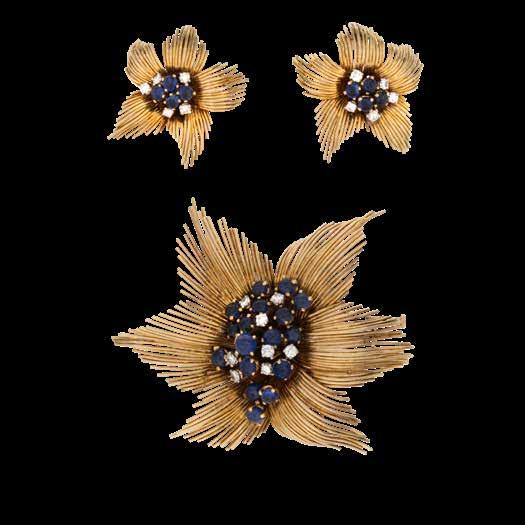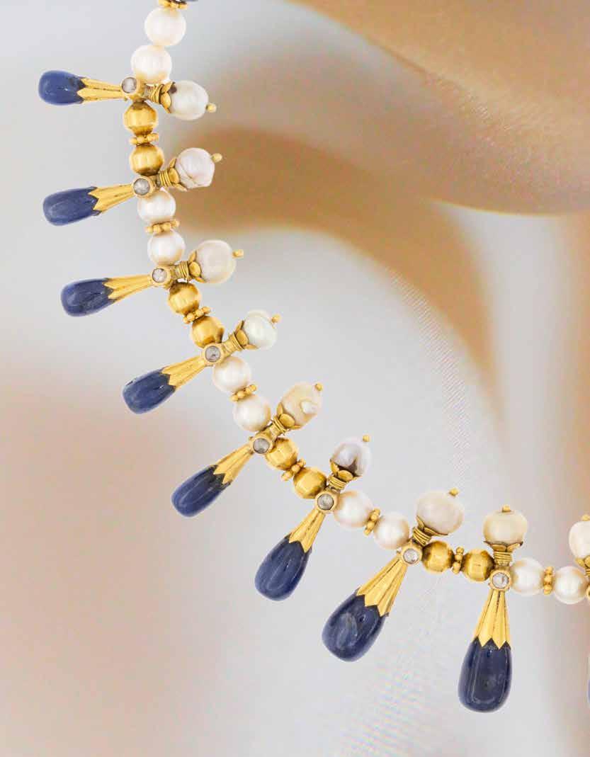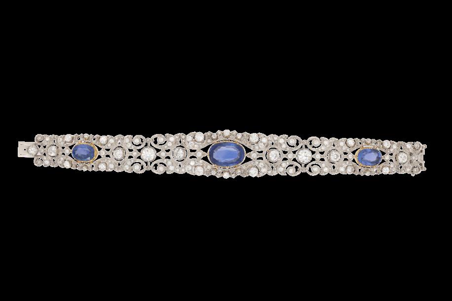 chiusura a motivo floreale con zaffiri tondi, lunghezza 18 cm.