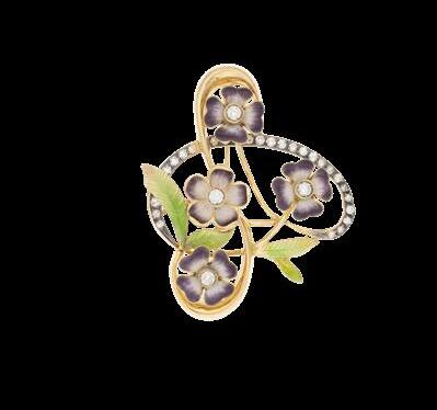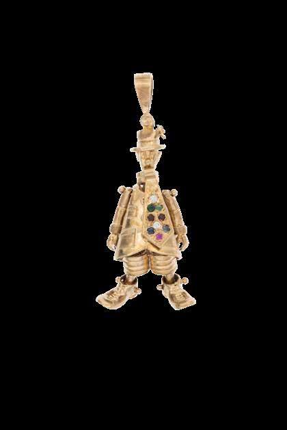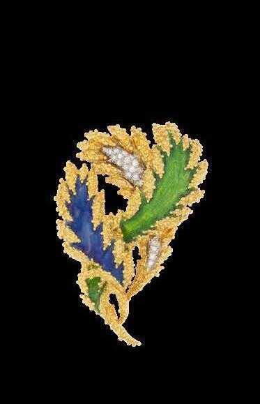 SPILLA PAPERINO IN ORO GIALLO 18KT E SMALTO POLICROMO