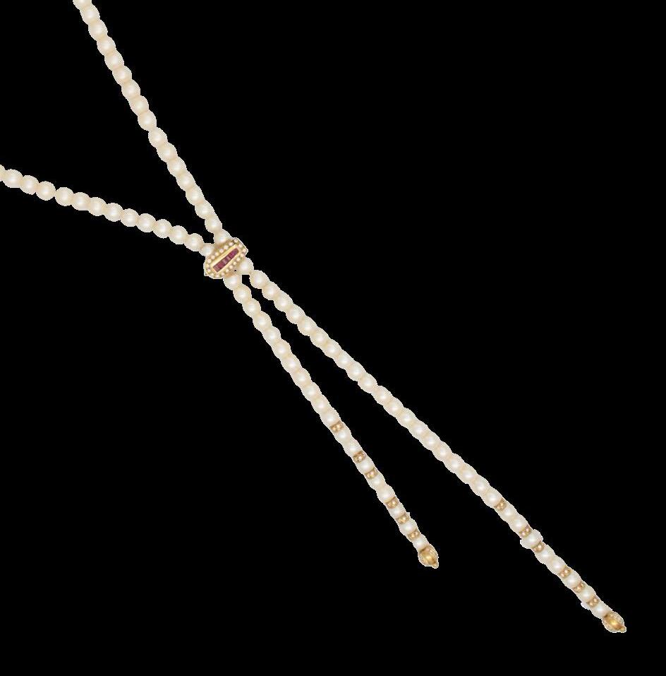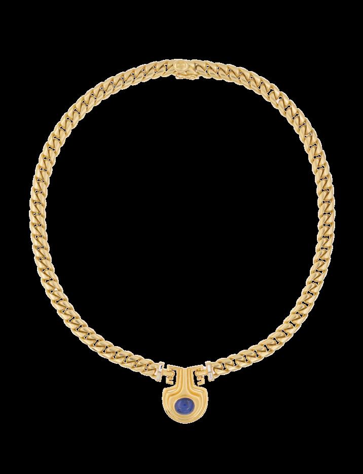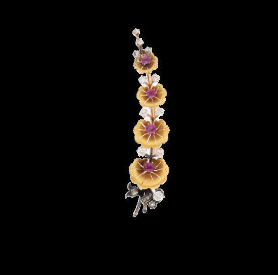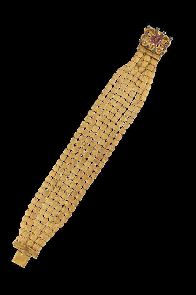 riuniti da chiusura in oro giallo con rubini e zaffiri tondi, lunghezza 18,5 cm.