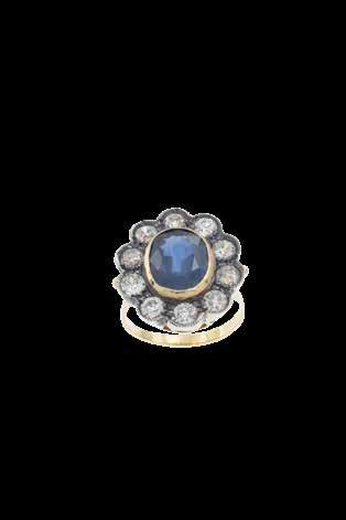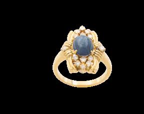 zaffiro taglio cabochon ct 1,40 circa e diamanti taglio brillante ct 0,60 circa, misura 16,5 peso 7 gr.