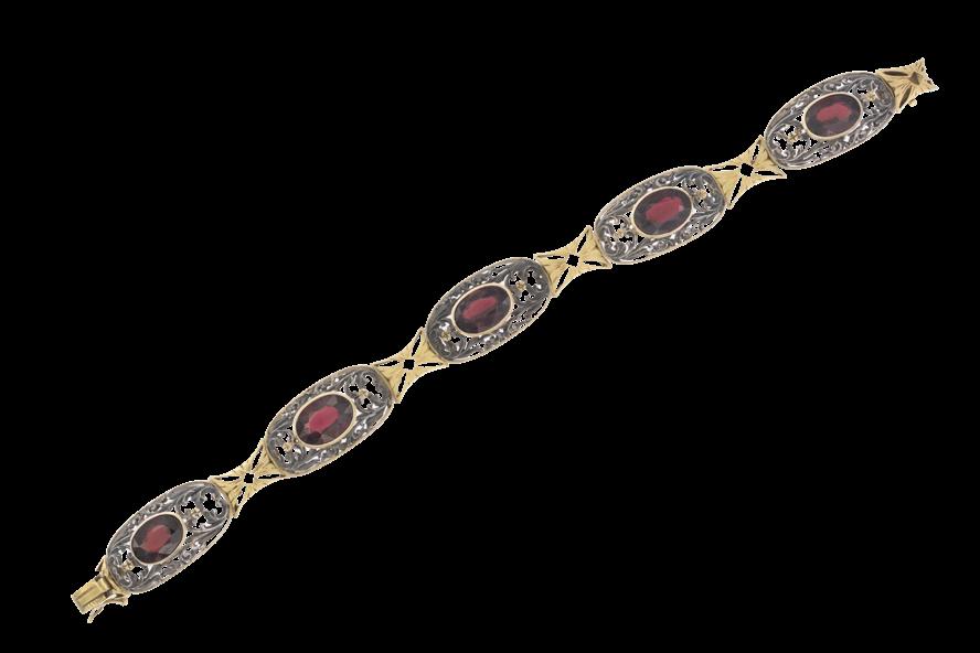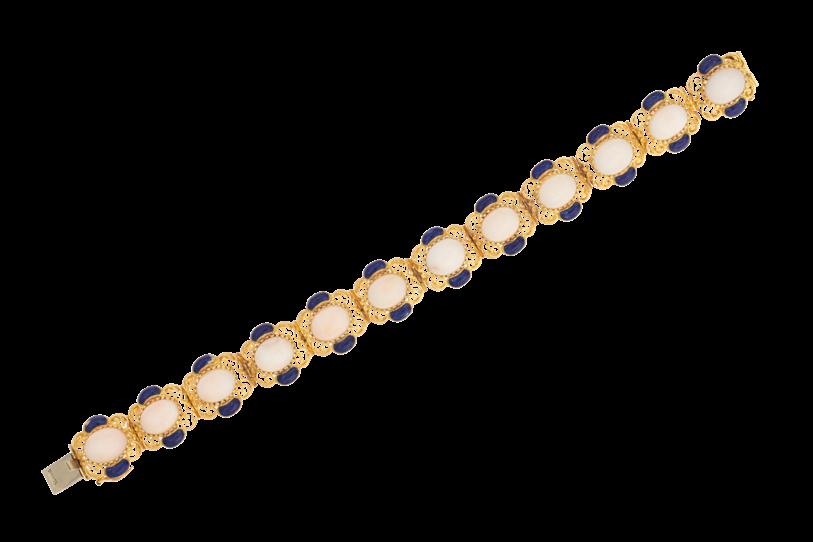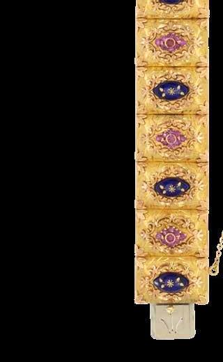 rubini tondi e smalto blu, lieve mancanza, chiusura a scomparsa, lunghezza 18 cm.