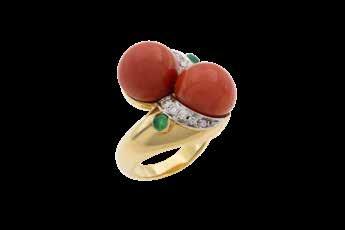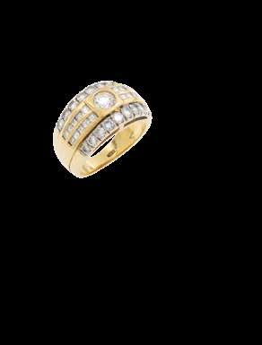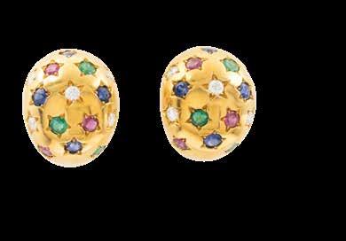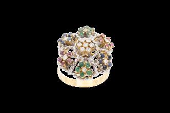 diamanti taglio brillante ct 0,25 circa, rubini, smeraldi e zaffiri tondi, misura 20 peso 11 gr. € 800/1.000