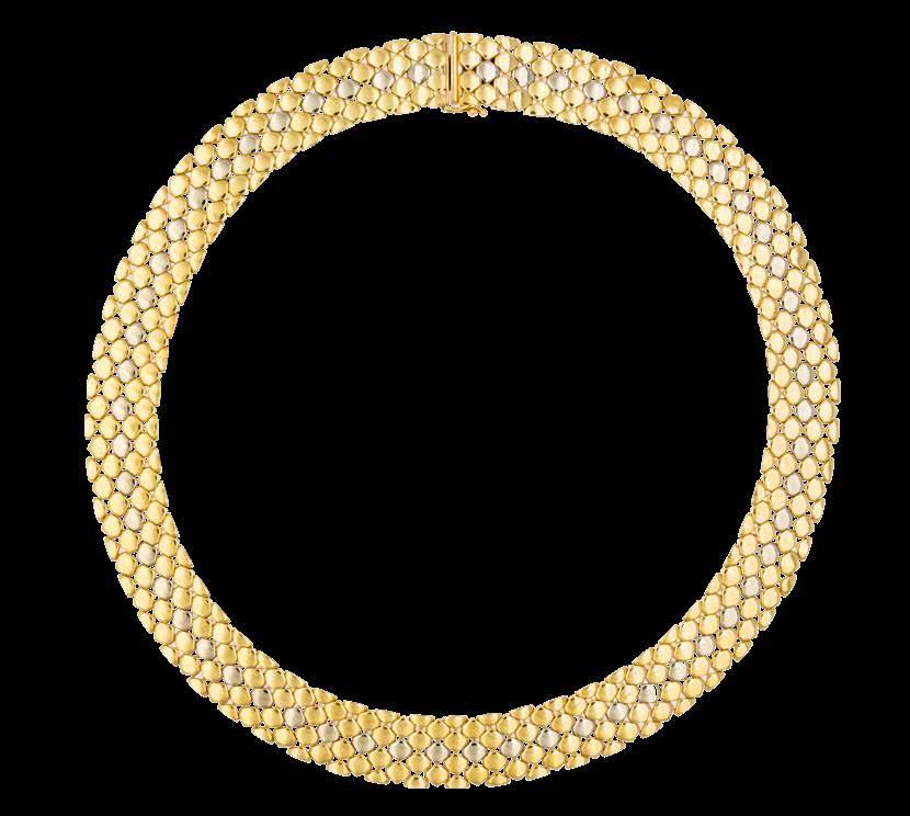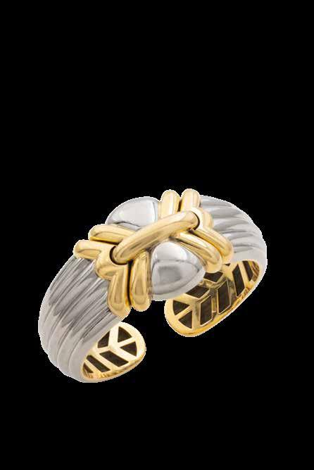 in oro giallo e bianco 18kt e diamanti taglio brillante ct 1,20 circa, chiusura a scatto, diametro 6,5 cm.