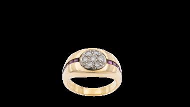 ANELLO IN ORO GIALLO 18KT DIAMANTI E RUBINI