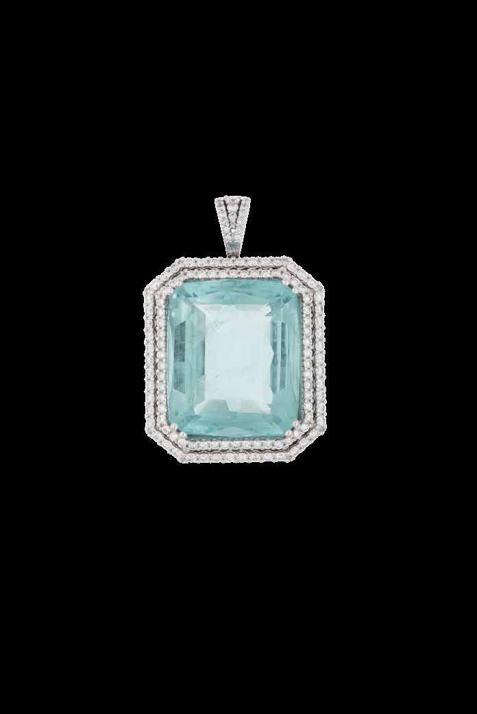 taglio brillante ct 5 circa, susta in oro bianco 18kt, dimensioni 5,3x3,4 cm. peso 38 gr. € 4.000/6.000