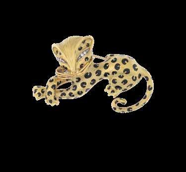 SPILLA PANTERA IN ORO GIALLO 18KT, SMALTO POLICROMO E DIAMANTI