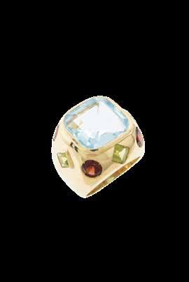 topazio azzurro taglio carré, peridoti e granati, misura 16 peso 21 gr.
