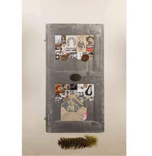 “Senza titolo” metà anni ‘80 tecnica mista e collage su carta, firmato in basso a destra, entro cornice 30x26,5 cm.
