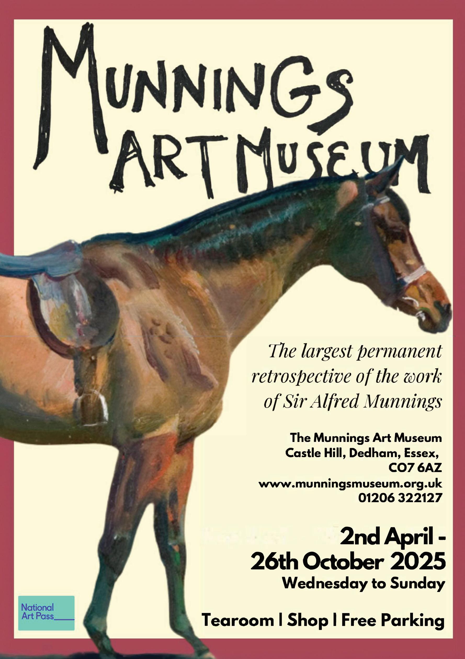 Explore the home and studios of Sir Alfred Munnings, PPRA and enjoy over 200 paintings, drawings and sculptures from his collection which are displayed throughout his house.