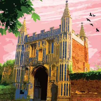 This elaborate pinnacled 15th-century gatehouse in East Anglian flushwork, is the sole survivor of the Benedictine abbey of St John. It was stormed by Parliamentarian soldiers during the Civil War siege of 1648.