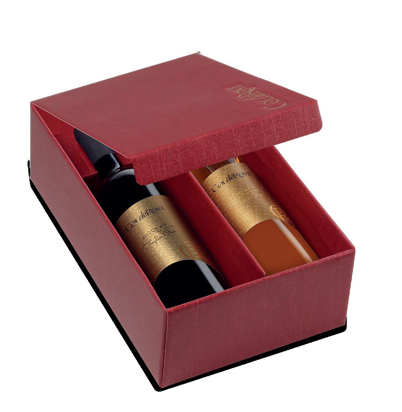 Scegli i prodotti che desideri regalare e chiedi a noi di confezionarli negli eleganti astucci Colderove di colore bordeaux.