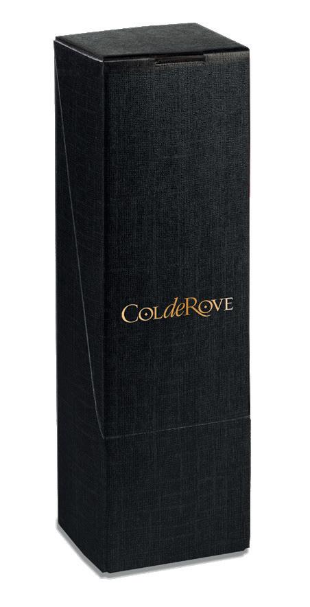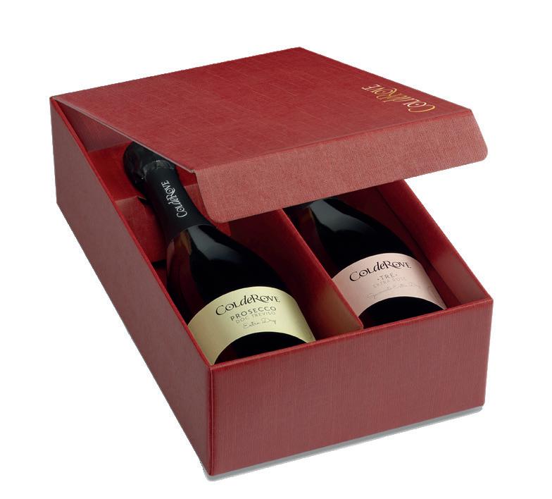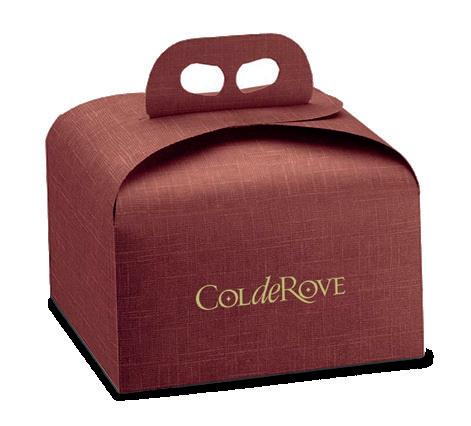 Colderove, oppure gli eleganti astucci realizzati in cartone effetto tessuto, di colore bordeaux e personalizzati Colderove.