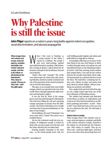 Why Palestine is still the issue John Pilger reports on a nation’s years-long battle against violent occupation, racial discrimination, and abusive propaganda
