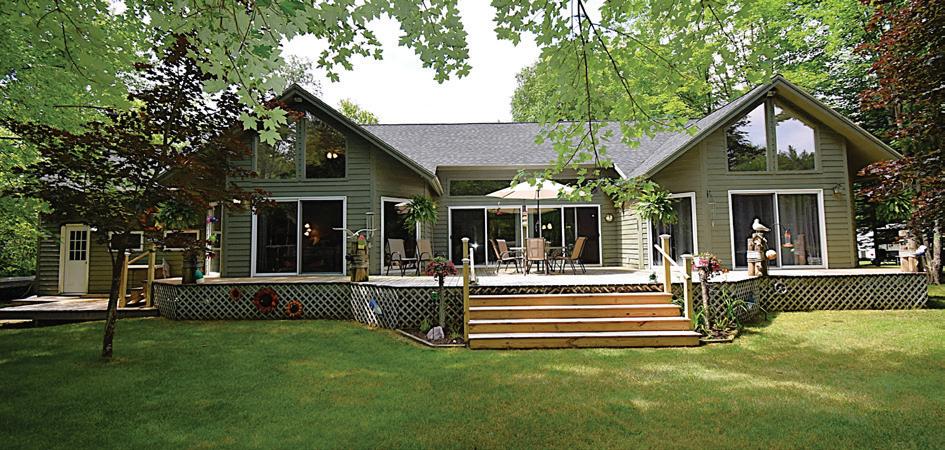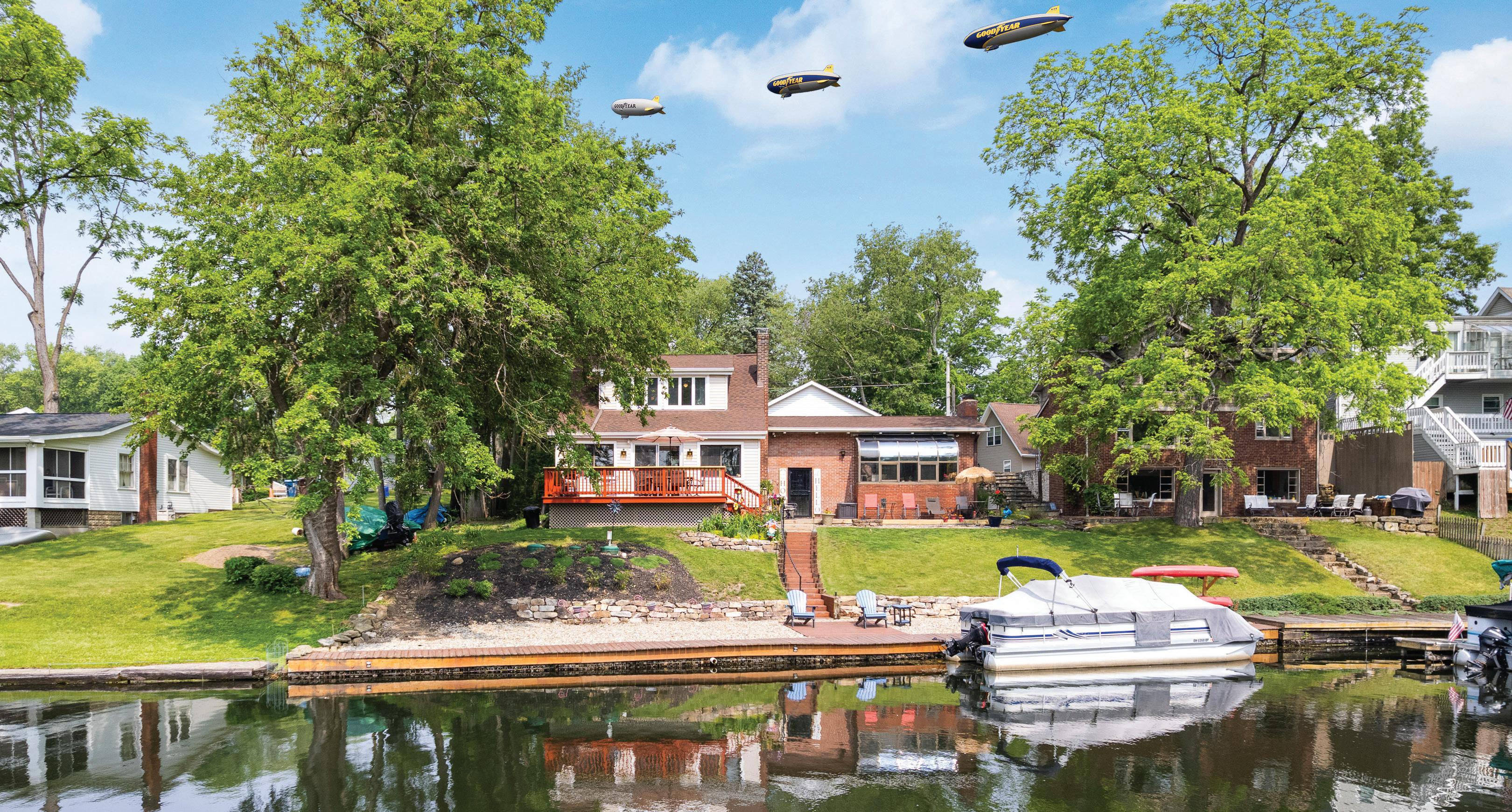 Better lake than never! Welcome to this charming Cape Cod home o ering 80 feet of prime lake frontage on the Main Chain of Portage Lakes. Ideally located between West Reservoir and Turkeyfoot Lake, you’re right in the heart of all the lake activity. Situated on a generous lot with low-maintenance landscaping, the outdoor space is built for both enjoyment and entertaining. You’ll love the spacious deck, cozy patio, repit area, and lakeside parking for up to three boats. A new two-car garage was added in 2020, with plenty of additional guest parking. Inside, the home o ers 3 bedrooms, 3 full bathrooms, and 3 replaces that add comfort and charm throughout. e kitchen features Corian countertops, stainless steel appliances, ample cabinetry, and beamed ceilings, plus a new dishwasher installed in 2025. e beamed ceilings continue into the dining and living areas, where a full-wall brick replace and an indoor greenhouse atrium create a unique and inviting space. A warm family room with another replace leads to a sunroom with lake views and direct deck access. A second main-level master suite adds convenience. Upstairs are two additional bedrooms and a full bath. e nished lower level o ers a
