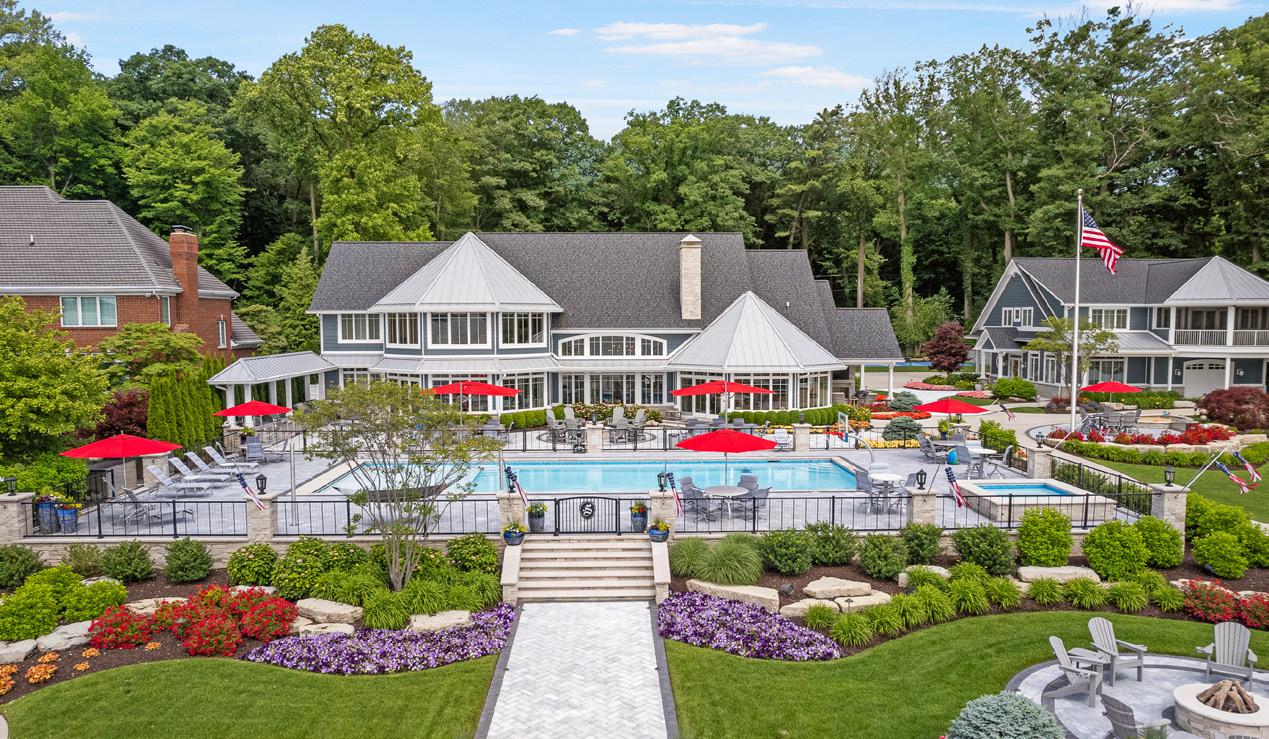 Beautiful brick Georgian Cape with five bedrooms including a first floor owner suite with new bath, three and a half baths, and stunning updates throughout. Gourmet kitchen with high-end appliances, custom cabinetry, and three sinks. Features include a grand two-story foyer, hardwood floors, finished basement with full bath, designer patio, heated three-car garage, bonus lawn garage, and premium landscaping on a half-acre in a prime neighborhood. Listed by Christopher Frederick with Coldwell Banker Schmidt Realty.