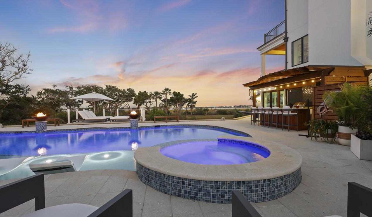 • Pavilion with gas grills, a pool, hot tub, and a gas firepit for family and friend gatherings.