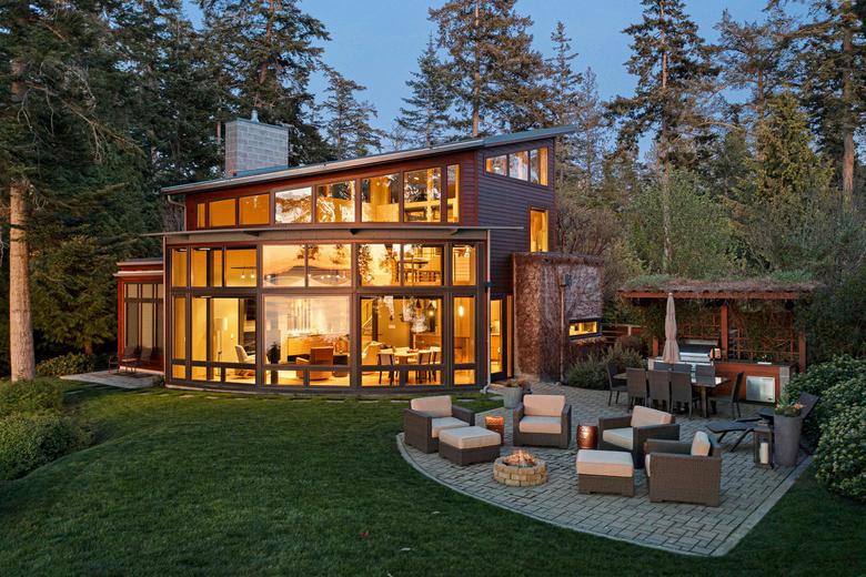Nestled on nearly 2 acres on Big Henry Island’s west side, this Northwest Contemporary waterfront estate offers sweeping views of the Salish Sea and Canadian Gulf Islands. Accessible by private boat or seaplane, and just minutes from Roche Harbor, this Alan Liddle–designed home blends modern elegance with rustic charm. Vaulted, wood-beamed ceilings frame stunning island vistas. Enjoy 200± feet of private waterfront with a buoy and a 30' boat slip. Separate guest quarters include a full kitchen and bunk room. Experience the ultimate Northwest island lifestyle —serene, secluded, and perfect for fishing, beachcombing, and coastal adventure.