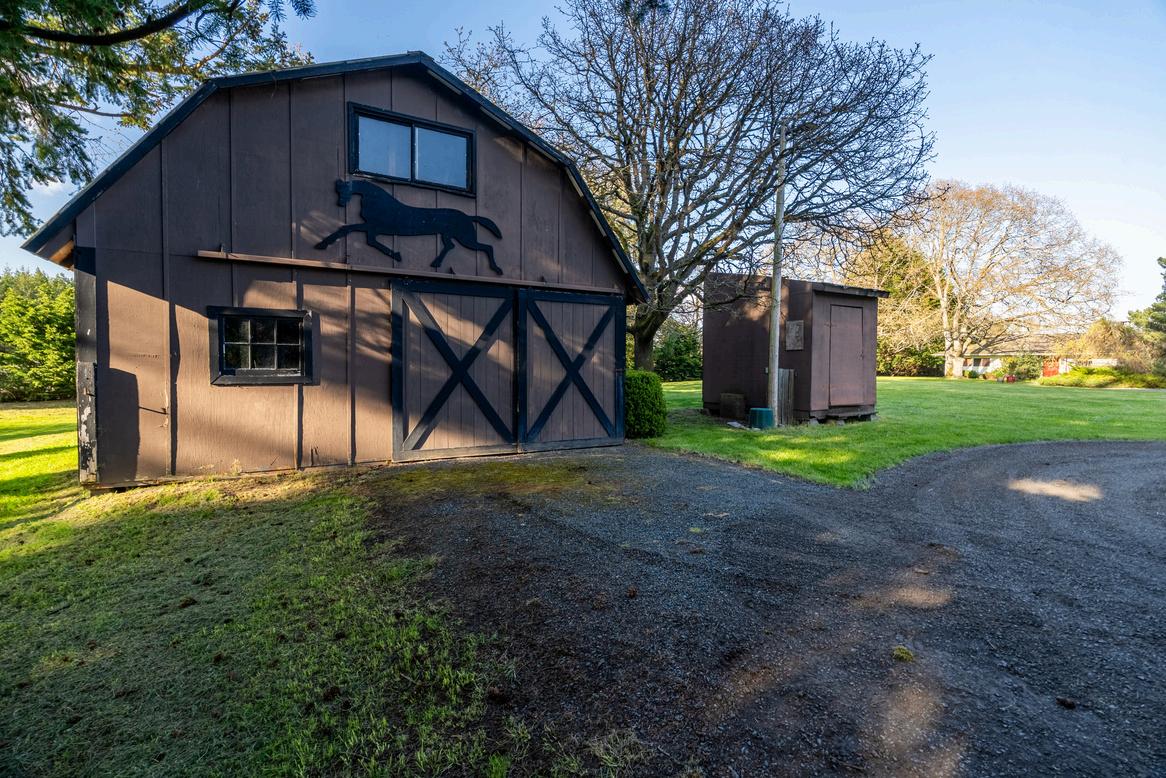 Nestled among the timeless beauty of Garry Oaks, this exceptional property offers nearly four acres of serene countryside living. Designed with horses in mind, the land is cross-fenced and features a two-stall barn but can also be your home out on the country with or without horses. The charming 3 bedroom, 3 bath, one-story ranch style home provides effortless living with a sun-filled layout, complemented by a cozy sunroom and a versatile studio space and attached garage. A picturesque pond adds to the tranquility of the landscape, while the expansive front yard invites relaxation and outdoor enjoyment. The front yard as well as the back yard has beautiful oak trees.