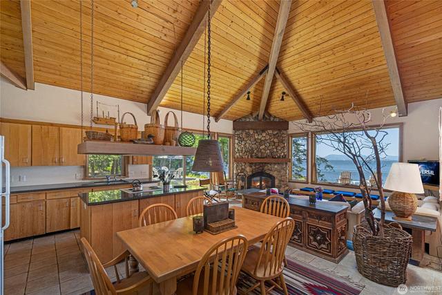 Nestled on nearly 2 acres on Big Henry Island’s west side, this Northwest Contemporary waterfront estate offers sweeping views of the Salish Sea and Canadian Gulf Islands. Accessible by private boat or seaplane, and just minutes from Roche Harbor, this Alan Liddle–designed home blends modern elegance with rustic charm. Vaulted, wood-beamed ceilings frame stunning island vistas. Enjoy 200± feet of private waterfront with a buoy and a 30' boat slip. Separate guest quarters include a full kitchen and bunk room. Experience the ultimate Northwest island lifestyle —serene, secluded, and perfect for fishing, beachcombing, and coastal adventure.
