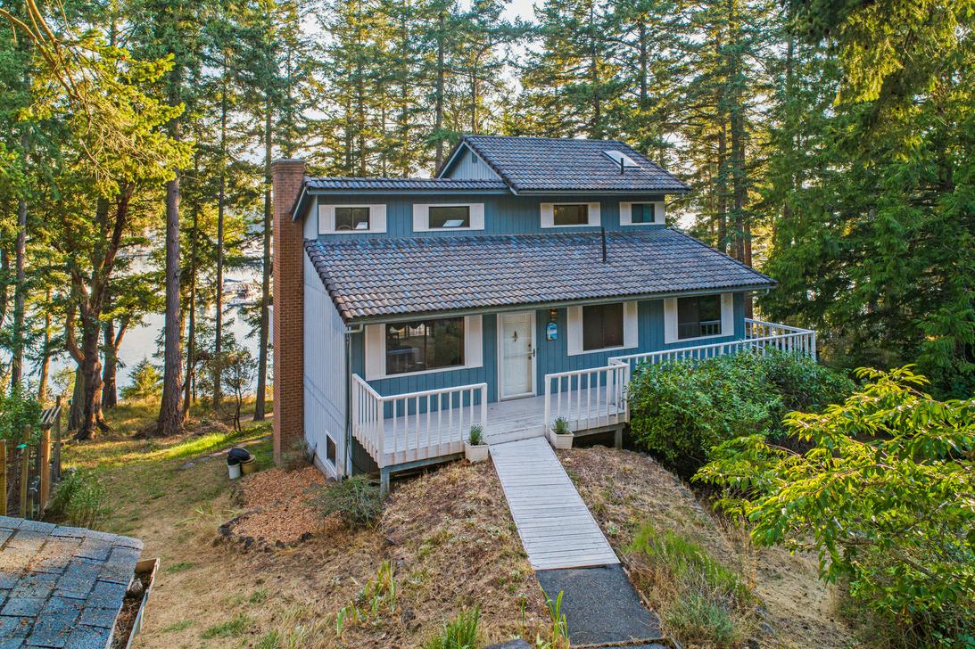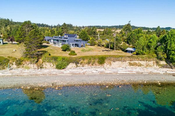 Discover waterfront living with this stunning property and beautiful Griffin Bay views. This spacious home on 3.3 acres, features 3 bedrooms, 3 baths and separate attached apartment with additional bedroom and bathroom perfect for guests. The home includes an office and bonus room, ensuring plenty of space for work and leisure. Attached 2 car garage, porte cochere and detached garage sized for boat and shop, storage space, bathroom, and small home gym w/workout Lululemon Mirror. Stairs lead to a gravel beach & mooring buoy. With a new septic system & private well, fruit trees, swim spa, generator and solar panels, this is a dream property. Two separate parcels, this property is an ideal blend of privacy and accessibility close to town.