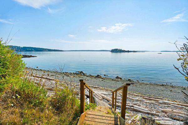 Wake up to sweeping waterfront views stretching east toward Mt. Baker, Orcas Island, Yellow Island, and the serene passage of Wasp Pass. This sunny beach lot offers a rare combination of natural beauty and practical advantages protected from prevailing winds and stairs down to a long stretch of walkable pebble beach. The land is partially cleared, level, and accented with mature, majestic trees, providing both privacy and character. A paid water hook-up is already in place, making it easier to envision your dream retreat taking shape in this stunning, peaceful setting.