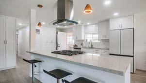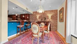Venetian plaster walls in warm terra cotta tones. The gourmet kitchen is both a design centerpiece and a culinary haven, featuring marble countertops, top-tier appliances, and a striking island ideal for gathering. A custom brick wall lends artistic character to the adjacent dining area, while the open-concept living space invites effor tless entertaining against a backdrop of dramatic vistas.