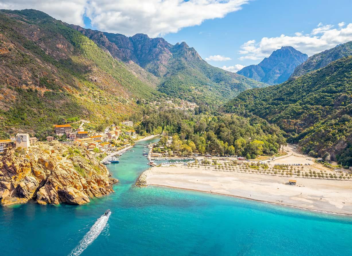 Corsica is a Mediterranean island located southeast of France, between the French Riviera and Sardinia. Mountainous and surrounded by turquoise coves, it offers a remarkable variety of landscapes — from the peaks of Monte Cinto to its pristine white-sand beaches.