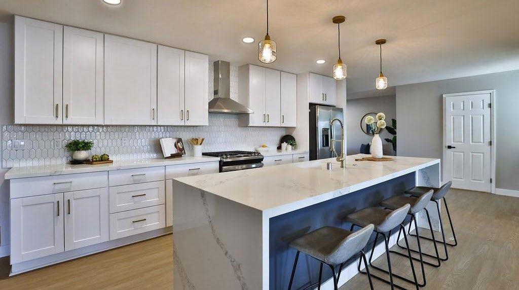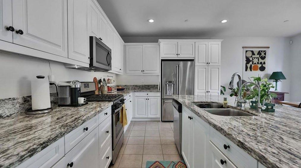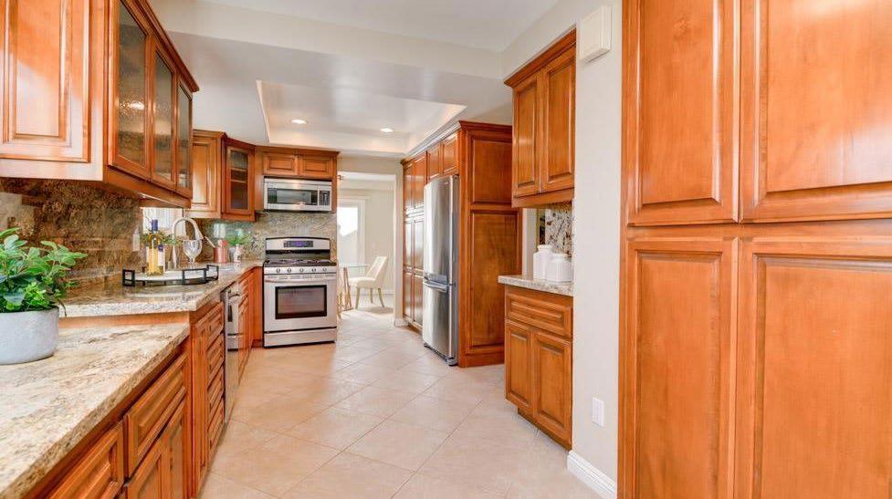 features an expansive living area that gourmet kitchen.