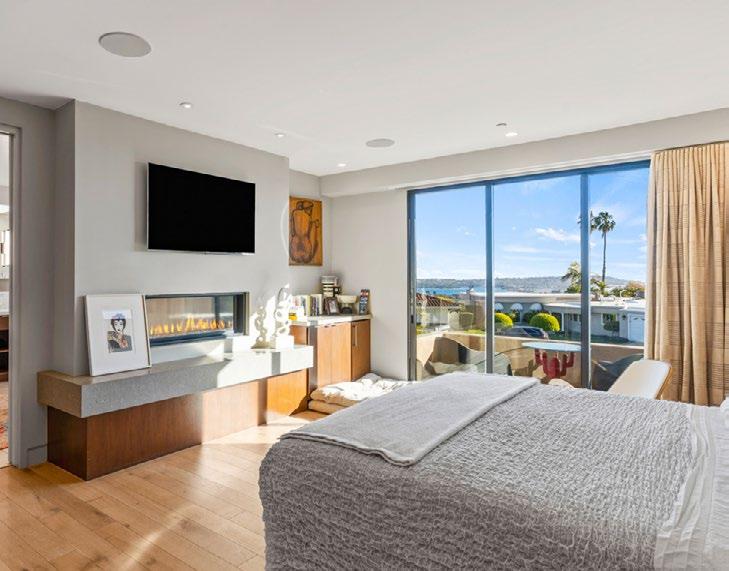 Located on the upper level a luxurious balcony designed as a dynamic sanctuary morning with stunning ocean views the intimate double-sided fireplace. closet, a connecting private office, and soaking tub, a large walk-in shower, accommodates an additional ensuite
