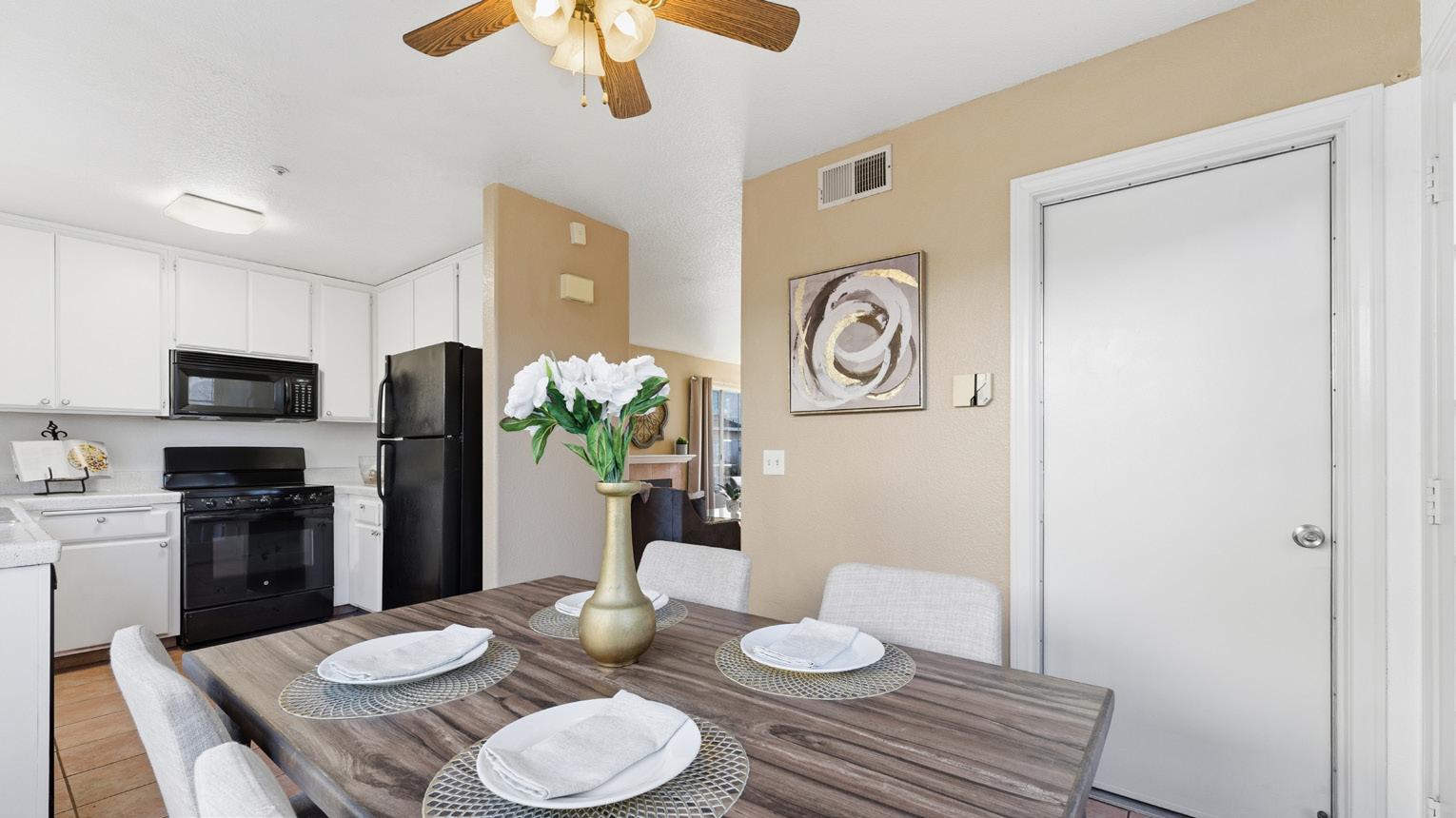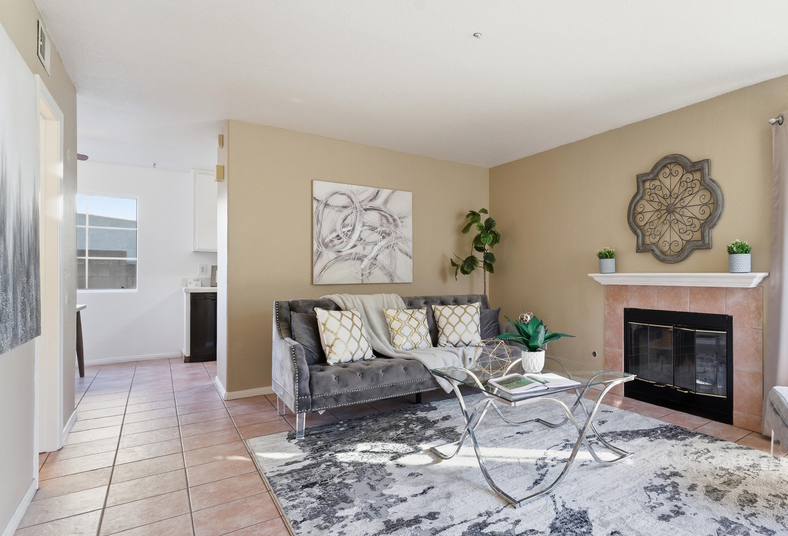Tucked in the heart of El Cajon, this ideally located, quiet townhome offers the comfort and privacy of a single-family residence with its own private fenced backyard space. With only one shared wall, the light-filled interior welcomes you with a spacious living room anchored by a warm, inviting fireplace. The open-concept layout flows effortlessly into the dining area and well-designed kitchen, which maximizes functionality with abundant cabinetry and updated countertops. Upstairs, the generous primary suite impresses with soaring cathedral ceilings, abundant natural light, and a beautifully refreshed ensuite bath featuring a new vanity and modern flooring. Thoughtful updates include new plush carpeting, new central A/C, and an attached one-car garage with direct access to laundry hookups, plus an additional parking space. Residents of Mollison Park enjoy a sparkling pool, relaxing hot tub, and tranquil grassy areas perfect for picnics or outdoor play. With low HOA dues and exceptional walkability to schools, parks, local shops, and dining, this home combines comfort, convenience, and an enjoyable lifestyle.