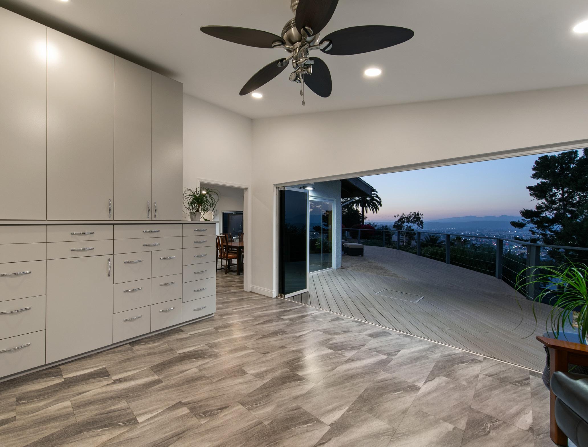 Nestled on a serene 0.63 acre cul-de-sac lot in coveted Mount Helix, this exquisite single-story residence offers sweeping panoramic mountain and city light views, refined upgrades, and a truly seamless indoor-outdoor lifestyle. A private courtyard with custom-stamped concrete welcomes you to striking double entry doors, opening into a voluminous living room where floor-to-ceiling glass doors fold away to frame the breathtaking natural surroundings. The open-concept layout flows effortlessly into the formal dining area and a designer-appointed chef’s kitchen featuring upscale custom wood cabinetry with soft close doors and drawers, quartz countertops, custom tile backsplash, high-end Thermador appliances, a generous walk-in pantry, and an oversized center island. The expansive family/living room with soaring ceilings connects to an impressive custom-built Trex deck—perfectly designed to preserve the natural beauty of the trees while embracing dramatic views and elevated entertaining. The tranquil primary suite is a true retreat, showcasing a custom walk-in closet and a luxurious spa-inspired ensuite with a jetted soaking tub, walk-in shower with built-in bench, bidet, designer vanity, quartz counters, and elegant lighting. Thoughtful enhancements include owned solar, a Trane HVAC system, new roof and gutters, Tesla charger, new garage door, fresh stucco, skylight, luxury vinyl plank flooring and recessed lighting throughout. The backyard oasis is equally functional and inviting, with a flat grassy lawn ideal for play and relaxation, an 8-person therapeutic spa with outdoor shower, and a wide driveway offering ample parking for RVs, recreational vehicles, and guests—plus rear backyard additional access. A separate laundry room features custom cabinetry and built-in organization, while the garage offers abundant storage. Ideally located just minutes from shopping, dining, toprated schools, and freeway access, this is an exceptional opportunity to enjoy your own private piece of paradise in a truly remarkable and luxurious setting.