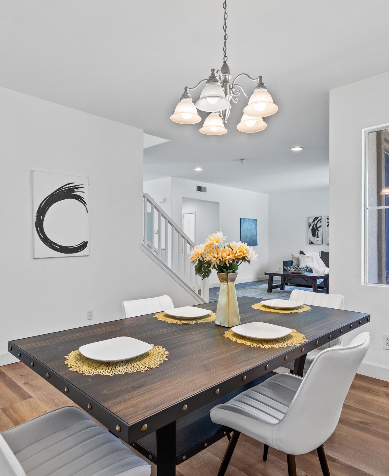 Ideally situated in the highly desirable Santa Fe Hills community, this beautifully updated residence offers a seamless blend of style, comfort, and functionality. A bright and airy open floor plan welcomes you with distinct yet flowing spaces, including a formal living room and elegant dining area—ideal for both intimate gatherings and larger celebrations. The remodeled chef’s kitchen is a true showpiece, featuring quartz countertops, stainless steel appliances, gas range, walk-in pantry and an expansive breakfast bar. It opens to a sunlit casual dining nook and a warm, inviting family room anchored by a cozy fireplace. A main-level bedroom and full bath offer a perfect retreat for guests or a private home office. Upstairs, the generously proportioned primary suite impresses with vaulted ceilings, a spacious walk-in closet and a spa-inspired bath complete with soaking tub, walk-in shower, dual vanities and refined finishes. Three additional bedrooms, a versatile loft—ideal for a playroom, home theater, or office— and a thoughtfully landscaped backyard with fresh sod and low-maintenance design complete the picture. Additional highlights include new luxury vinyl plank flooring, fresh interior paint, recessed lighting, a separate laundry room and an extended driveway accommodating up to four vehicles. Just minutes away, enjoy the exceptional amenities of Las Posas Park and Pool, offering an Olympic-size swimming pool, children’s water play area, grassy sports fields, and tennis courts. With top-rated schools, shopping, dining and freeway access all within easy reach, this home truly checks every box and is a must see!