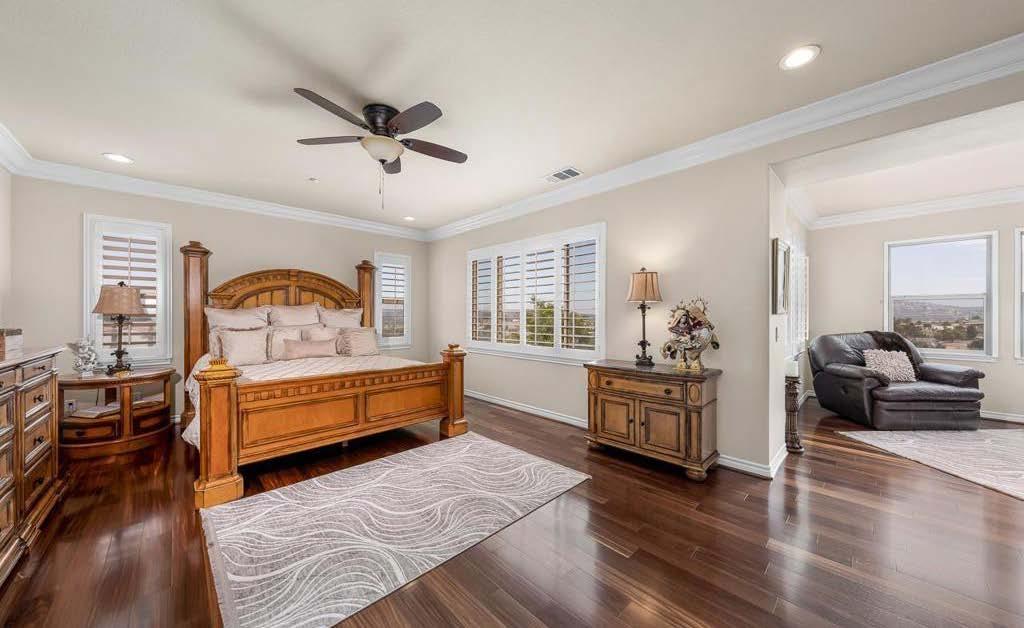 Stunning and spacious home located in the highly desirable San Miguel Ranch community. This beautifully upgraded residence features an outdoor kitchen and fireplace in the front courtyard, perfect for entertaining. Step inside to a grand high-ceiling foyer, an openconcept floor plan filled with natural light and a chef’s kitchen with WOLF appliances and a large island. Every bedroom includes its own en-suite bathroom for comfort and privacy. The luxurious primary suite offers a retreat area, dual walk-in closets, and a private balcony with breathtaking views. Additional highlights include a 3-car garage, dual staircases, three fireplaces, paid solar panels, and a sprawling private lot with panoramic views, ideal for adding a pool or outdoor living space. Located near top-rated schools, parks, hiking trails, shopping, restaurants, coffee shops, and with easy access to the 125 freeway. Don’t miss this rare opportunity!
