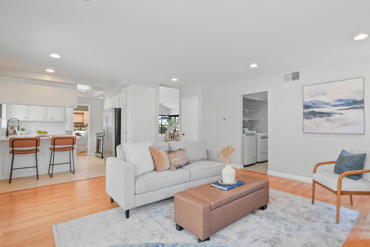 Welcome to the coveted Cottonwood community of Rancho San Diego. This 4 bedroom, 2.5 bathroom home is impressive on all fronts. The upstairs features 4 bedrooms and two full bathrooms. The large primary bedroom has vaulted ceilings and an ensuite bath. The downstairs features solid surface flooring throughout, massive windows allowing tons of natural light, vaulted ceilings, a half bath for guests, a formal dining area, and two living rooms. The kitchen has quartz counters and stainless steel appliances. The views from the back of the house are of the “park like” backyard. Seriously, this sprawling yard back feels like a park! It features a bbq island, play structure and hot tub.