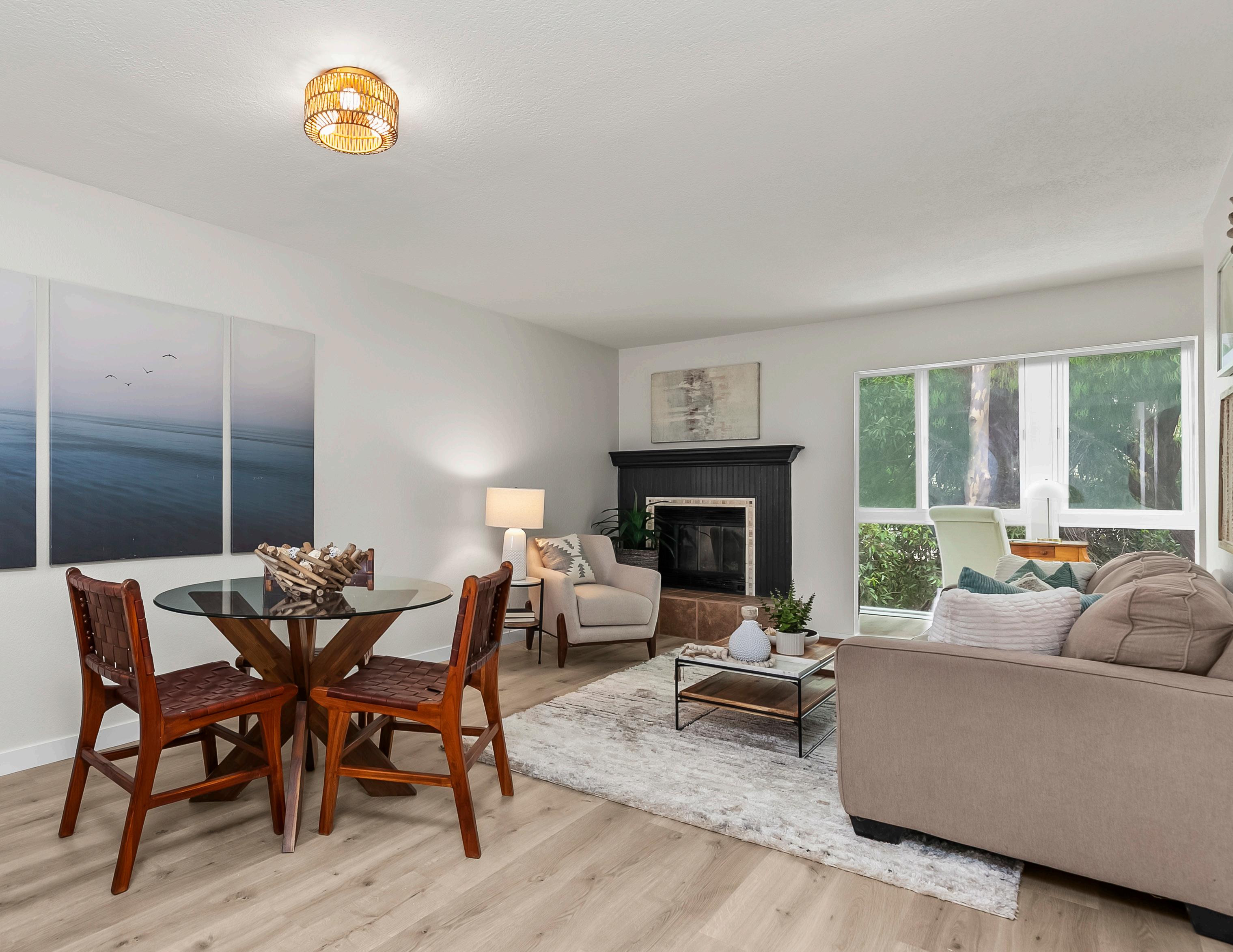 Enjoy peace and quiet thanks to quieter homes triple-pane windows! Located in Pacific Village, a quiet, well-kept community of just 22 homes, you'll appreciate the lowmaintenance lifestyle and modest HOA dues. The home also includes a private attached tandem garage (fits one car with additional space for storage or a small vehicle), in-unit laundry, and a third reserved parking spot in the secure shared garage. A spacious, enclosed private patio with extra storage rounds out the features of this fantastic property! Don’t miss this opportunity, schedule your showing today!