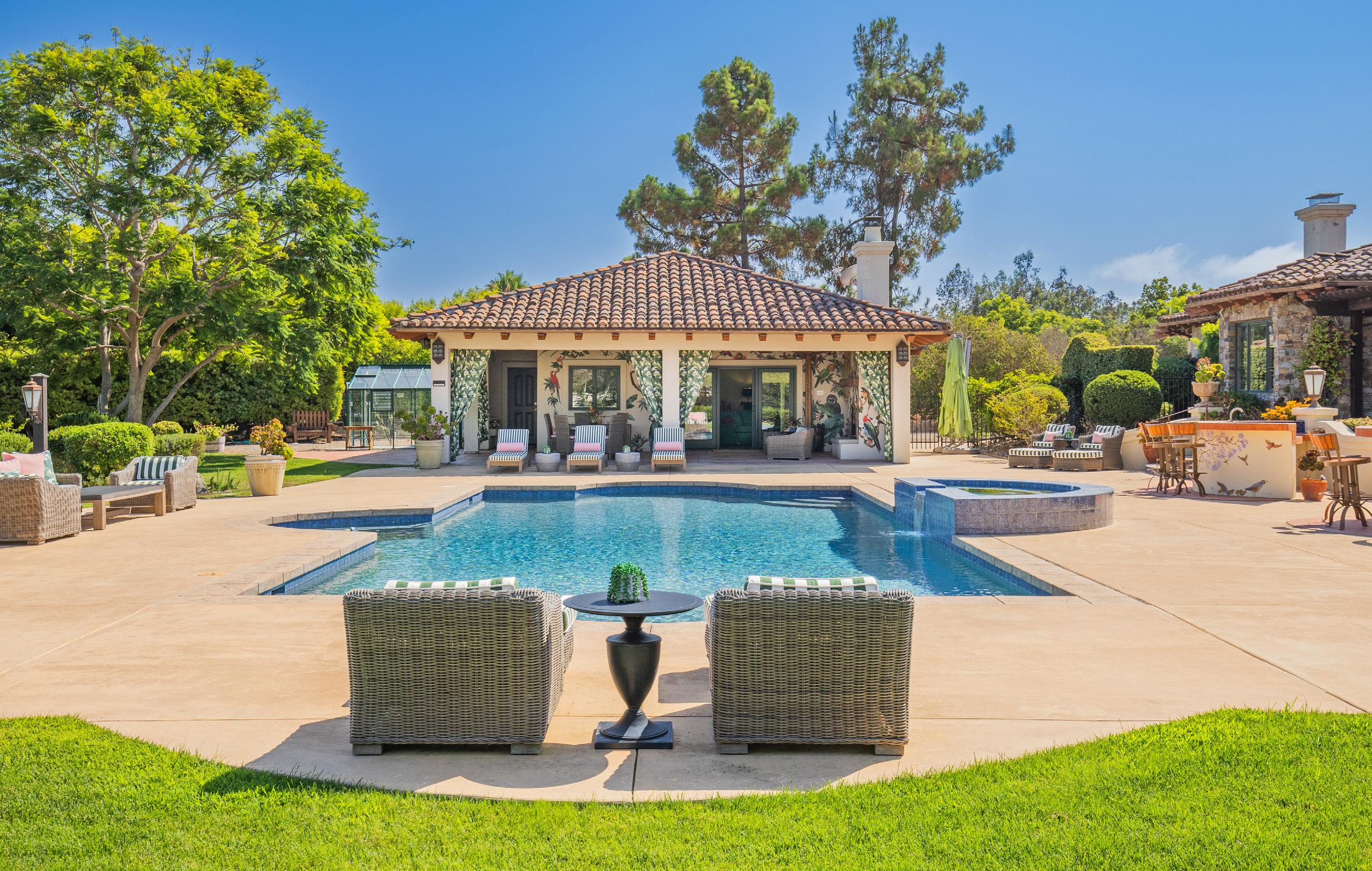 WOW What a gorgeous yard! The possibilities here are endless. One of the best streets in the Ranch. Close to Encinitas, Olivenhain and the I-5! Tucked away at the end of a quiet cul-de-sac on Rancho Santa Fe’s desirable west side, Pedazo De Cielo (“Piece of Heaven”) is a rare, single-level gated estate that masterfully combines luxury, privacy, and soul-stirring natural beauty. Situated on over two usable acres adjacent to equestrian trails, this meticulously designed hacienda-style compound by architect Alex Friehauf offers the perfect blend of timeless charm and modern comfort.