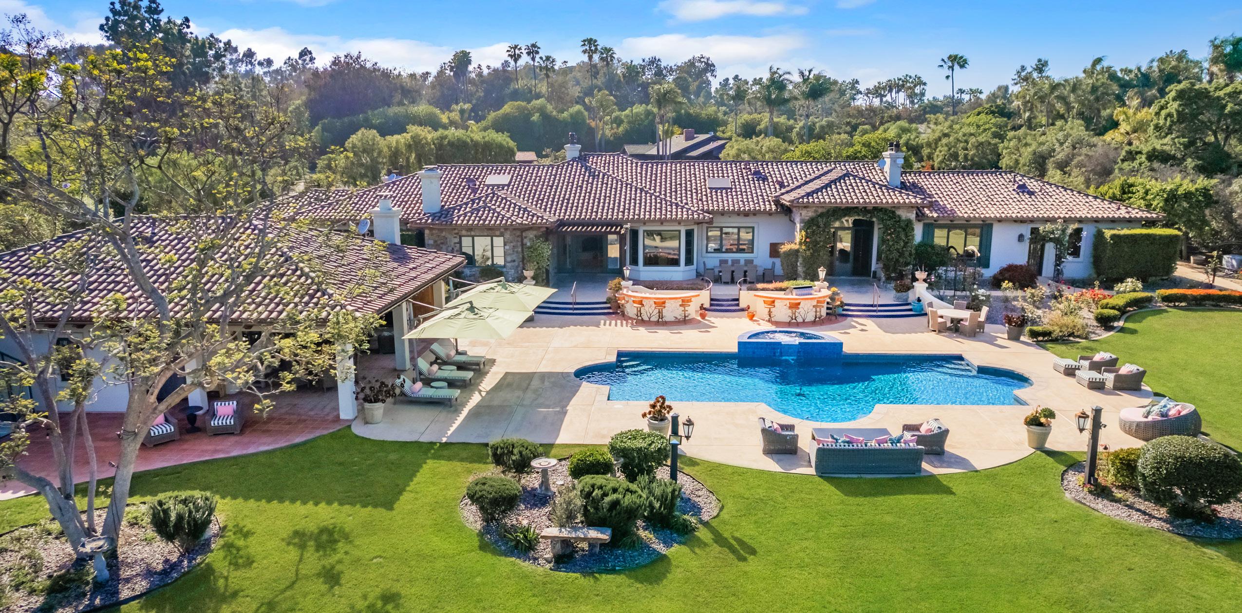 WOW What a gorgeous yard! The possibilities here are endless. One of the best streets in the Ranch. Close to Encinitas, Olivenhain and the I-5! Tucked away at the end of a quiet cul-de-sac on Rancho Santa Fe’s desirable west side, Pedazo De Cielo (“Piece of Heaven”) is a rare, single-level gated estate that masterfully combines luxury, privacy, and soul-stirring natural beauty. Situated on over two usable acres adjacent to equestrian trails, this meticulously designed hacienda-style compound by architect Alex Friehauf offers the perfect blend of timeless charm and modern comfort.