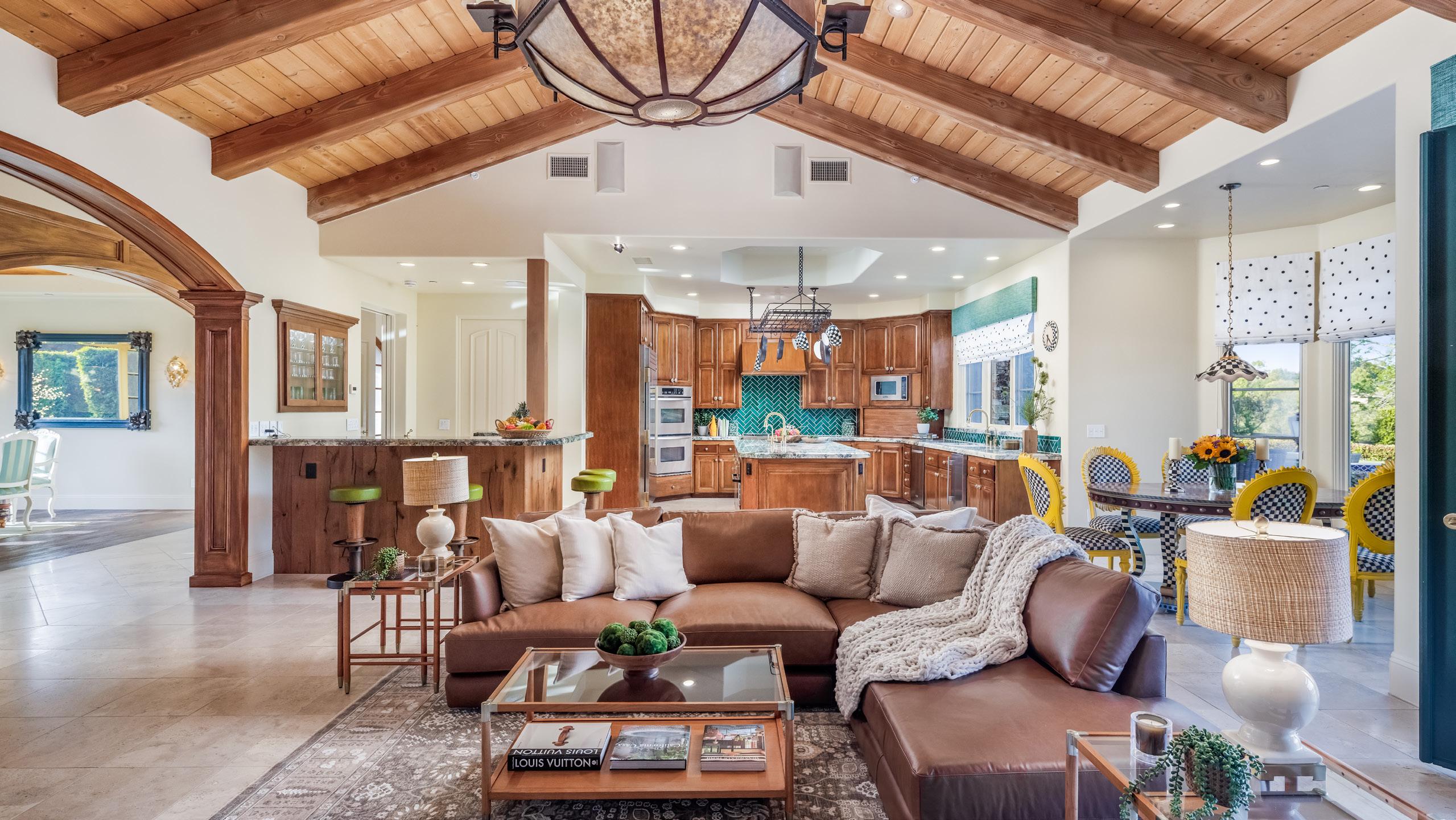 Step inside the main residence and discover 5,906 square feet of refined living space, where rich travertine and wide plank European Oak floors, wood-beamed ceilings, skylights, and multiple fireplaces create a warm, elevated ambiance. The well-thought-out floor plan features four spacious ensuite bedrooms, including a secluded primary suite with a bonus room ideal for a gym, nursery, or creative space. A dedicated office and multiple light-filled living areas ensure both productivity and relaxation.