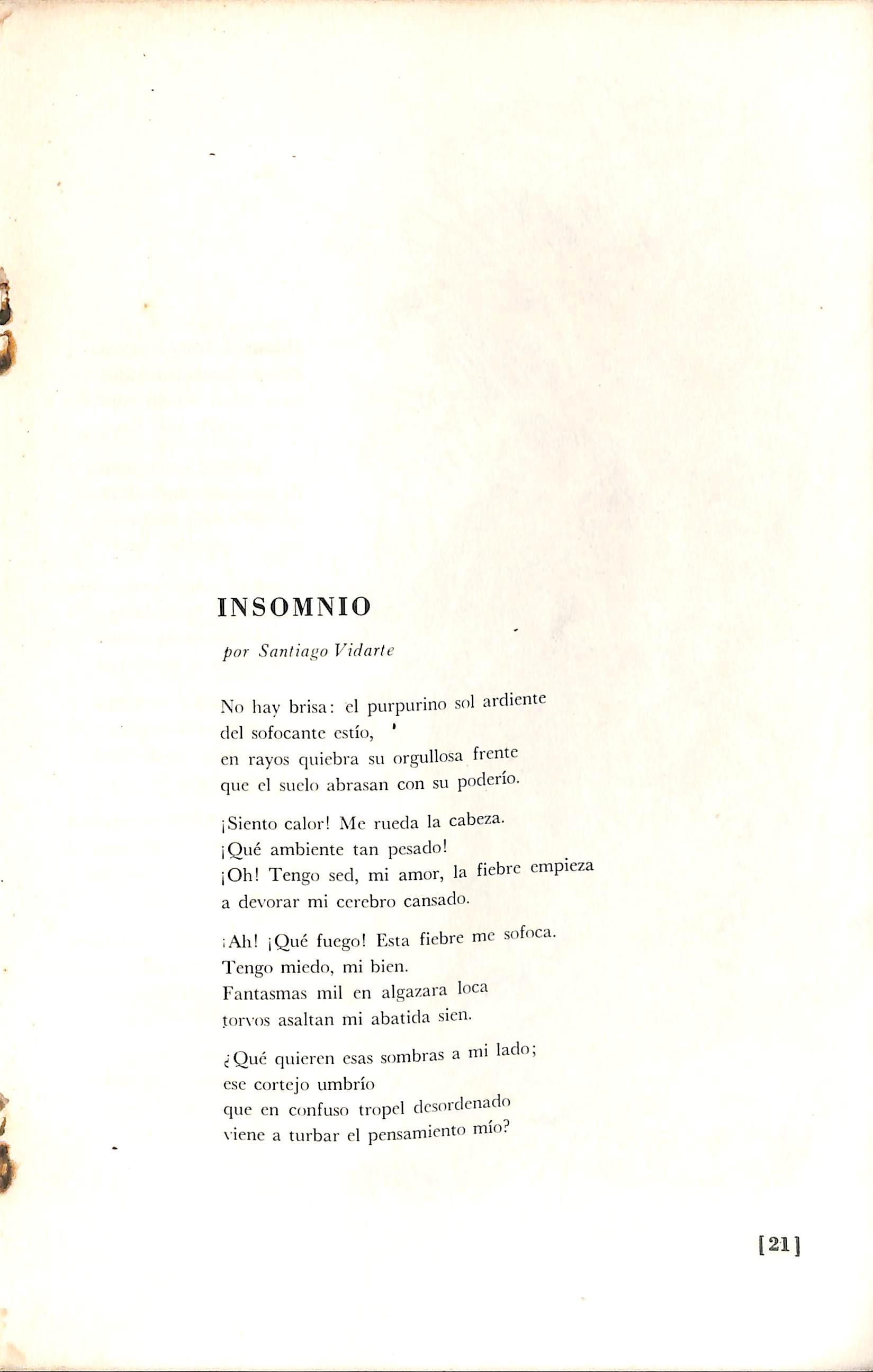 La décima criolla — puntal del continente, puntal de lo indohispano — de espíritus se llena. Autóctona, calada de lo nativo, hirvicnte, se impone en nuestra zona de planta, mar y arena.