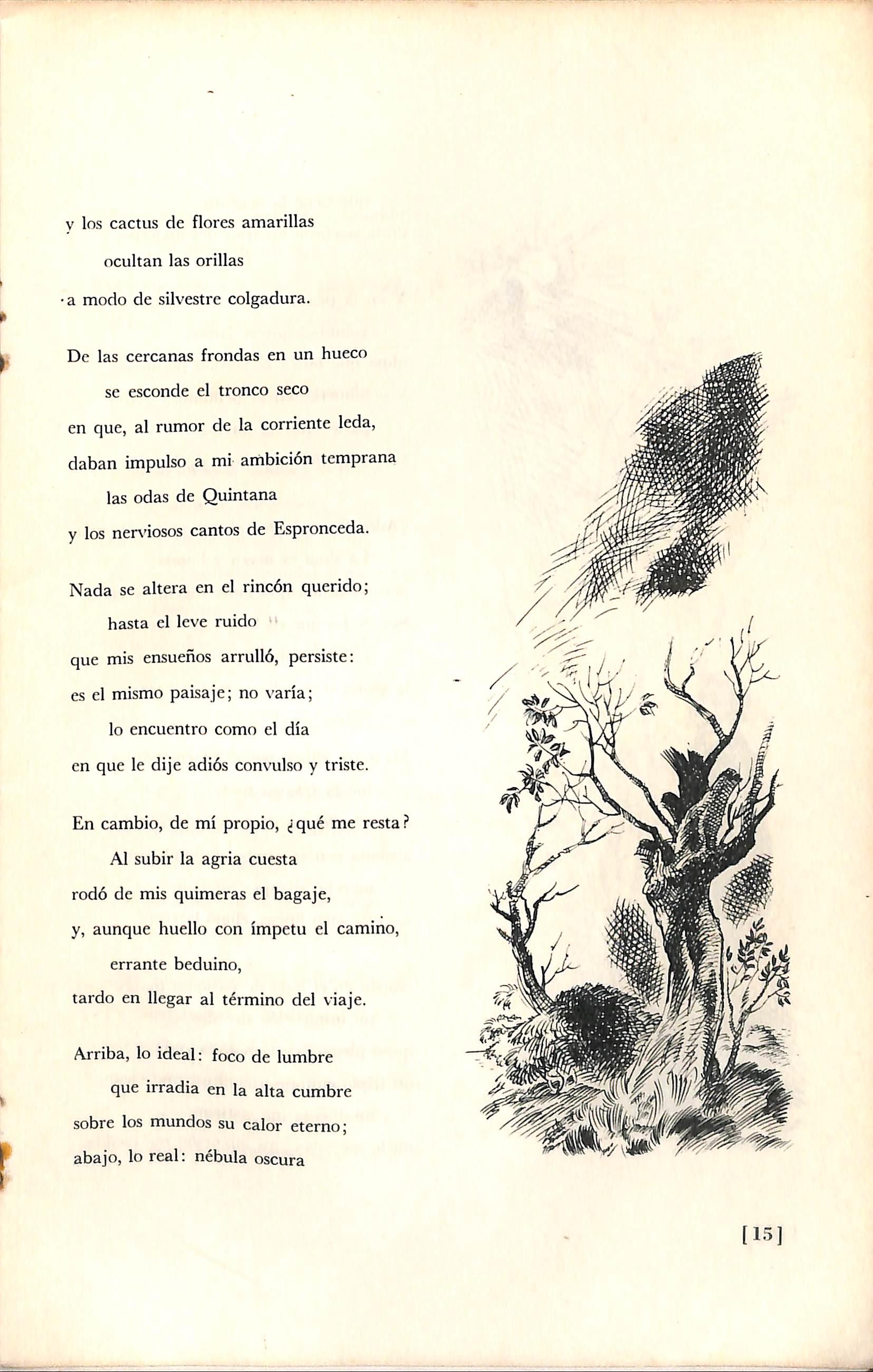 Tras diez años de luchas incesantes quiero vagar, como antes, junto a la margen del humilde río que tantas veces ofreció a mis penas la paz de sus arenas y la quietud de su ribazo umbrío.