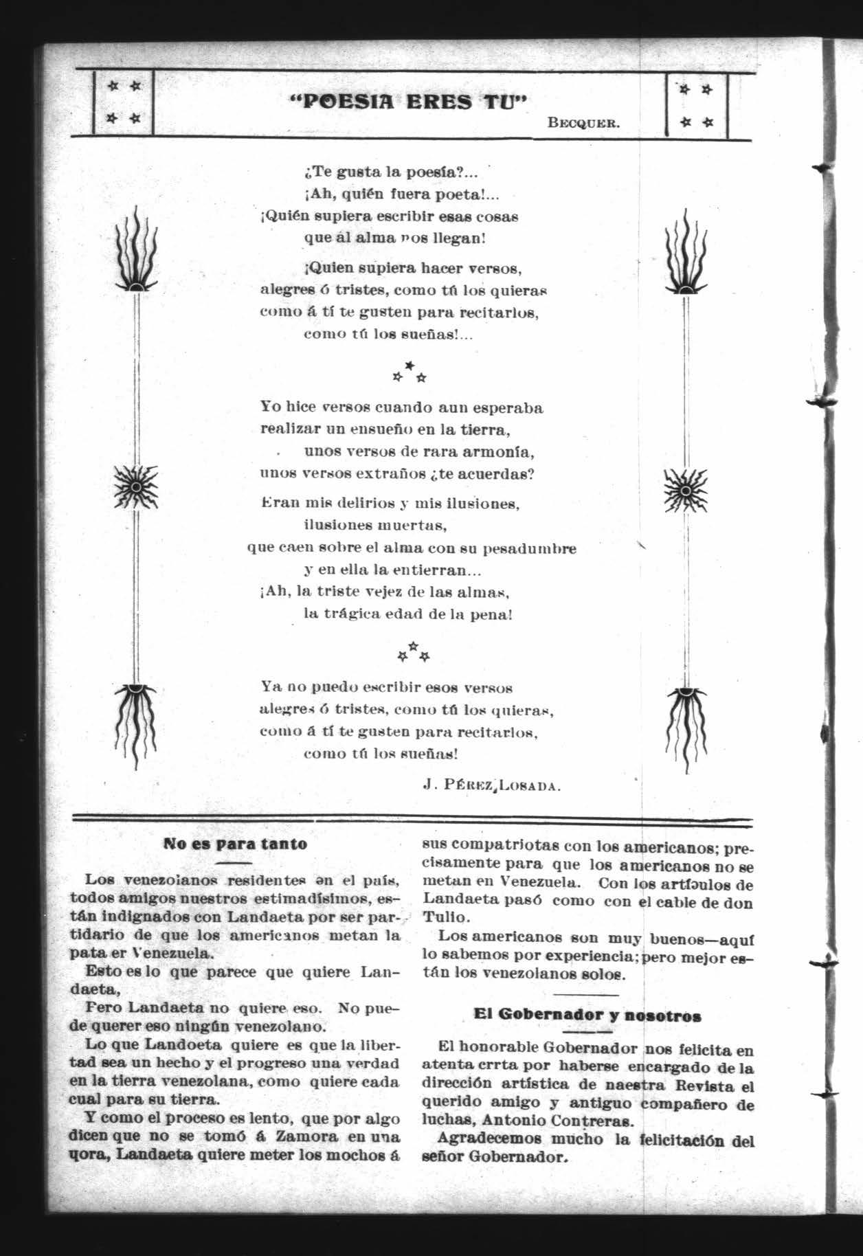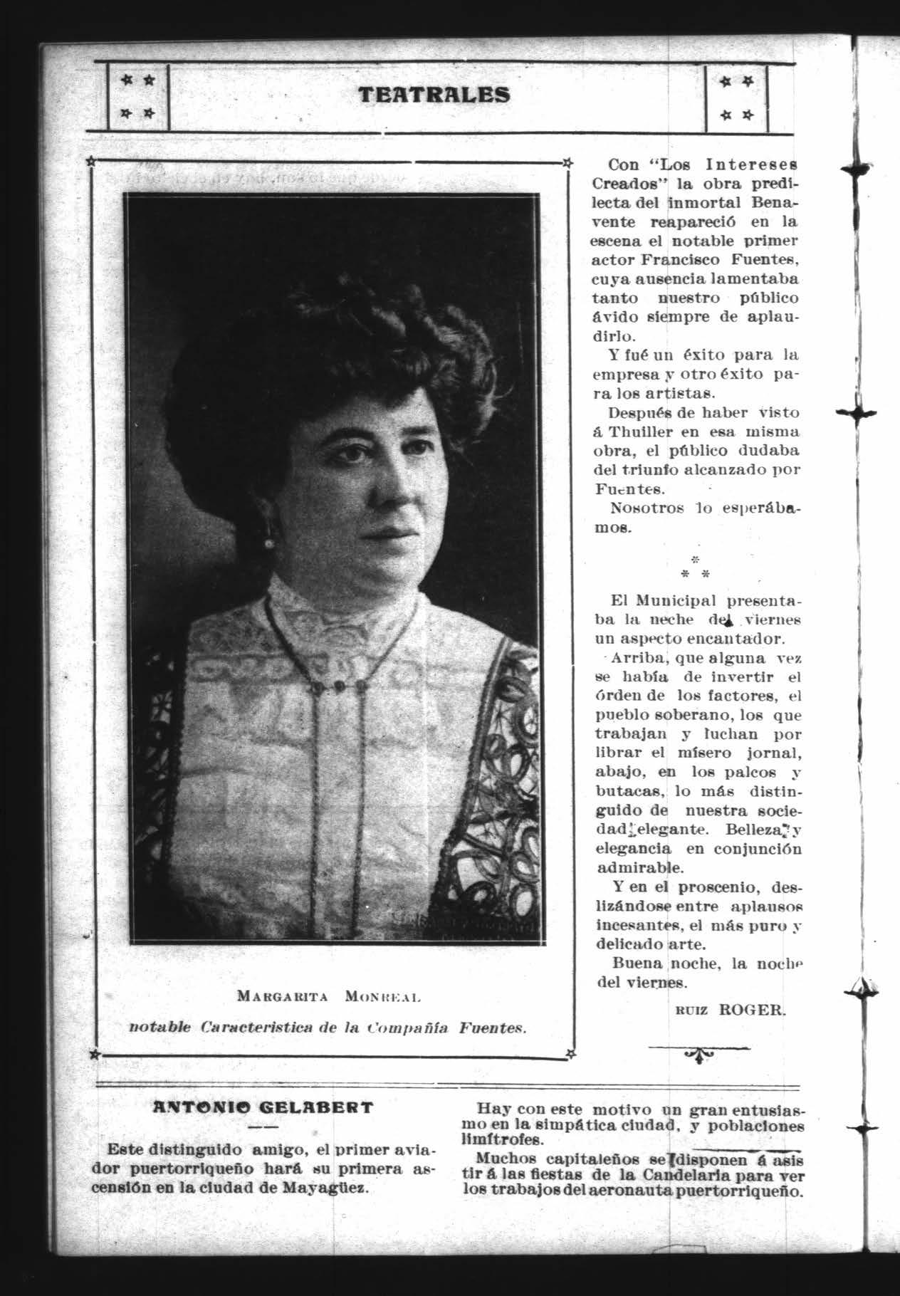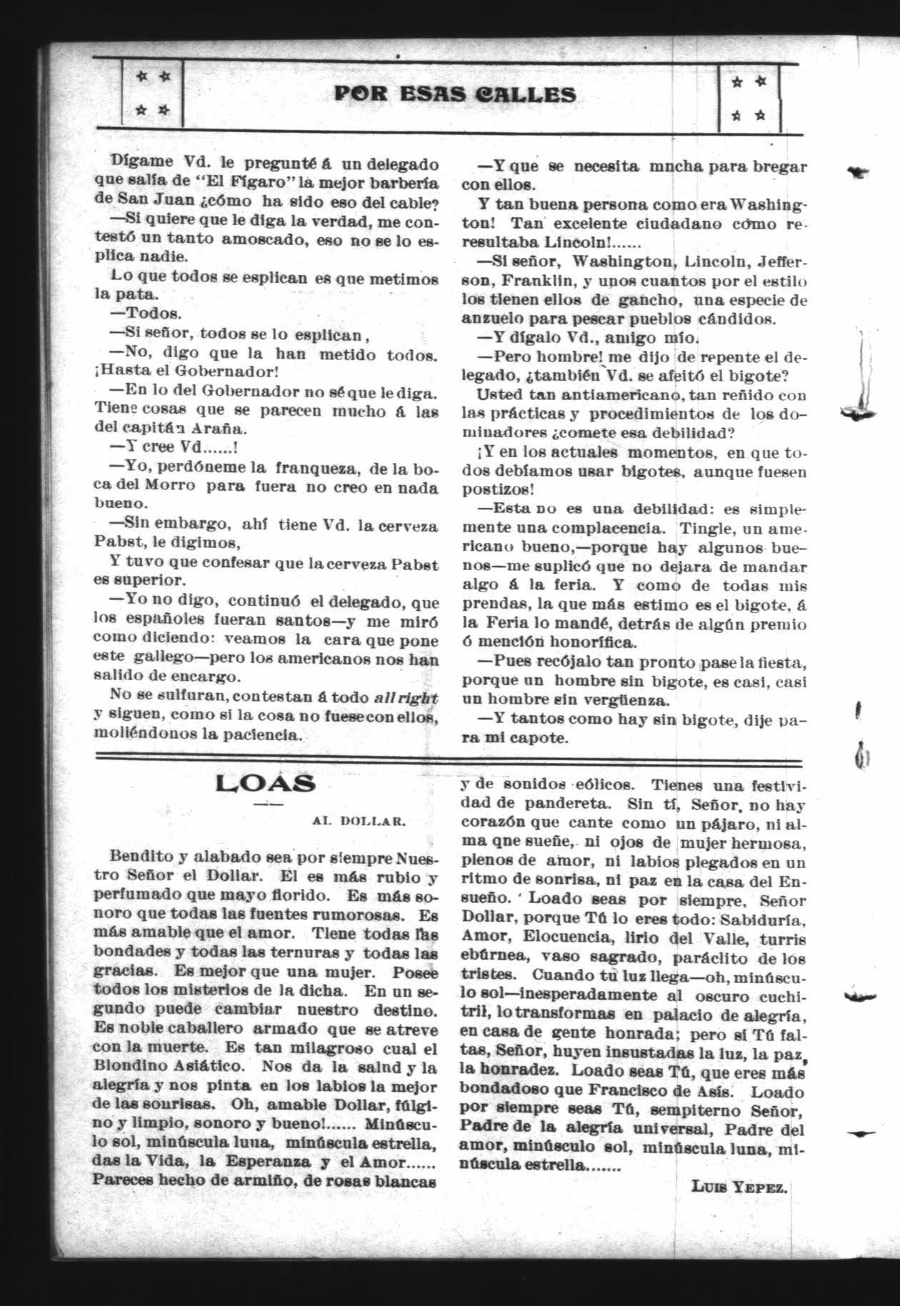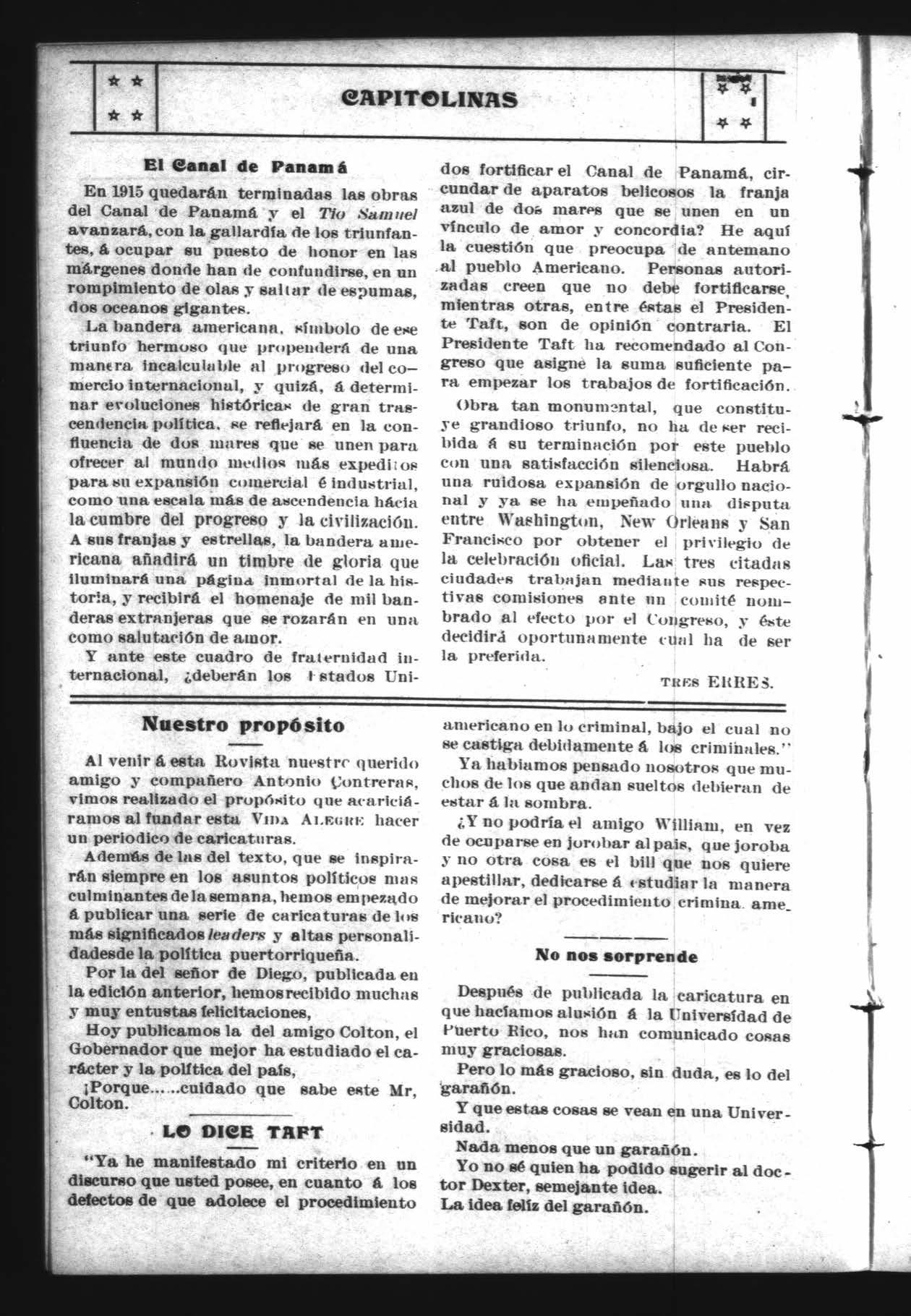 Al quedar instalados los nuetalleres de fotograbado, el director artistico llevará á la caricatura con la consideración y el respeto que merecen, las poetisas, escritoras, y artistas puertorriqueñas, á imitación de las Ke-