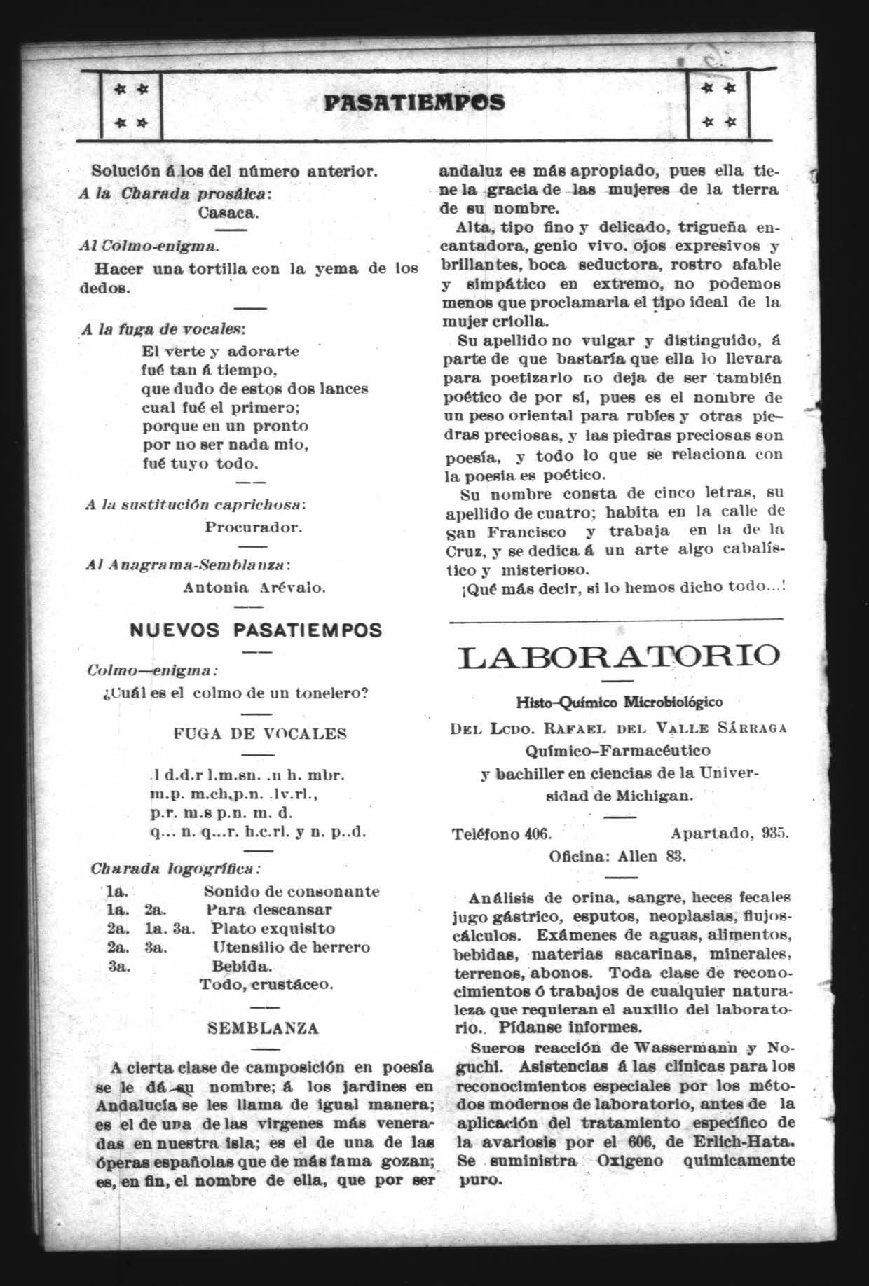 Teléfono 406. Apartado, 935. Oficina: Allen 83.
