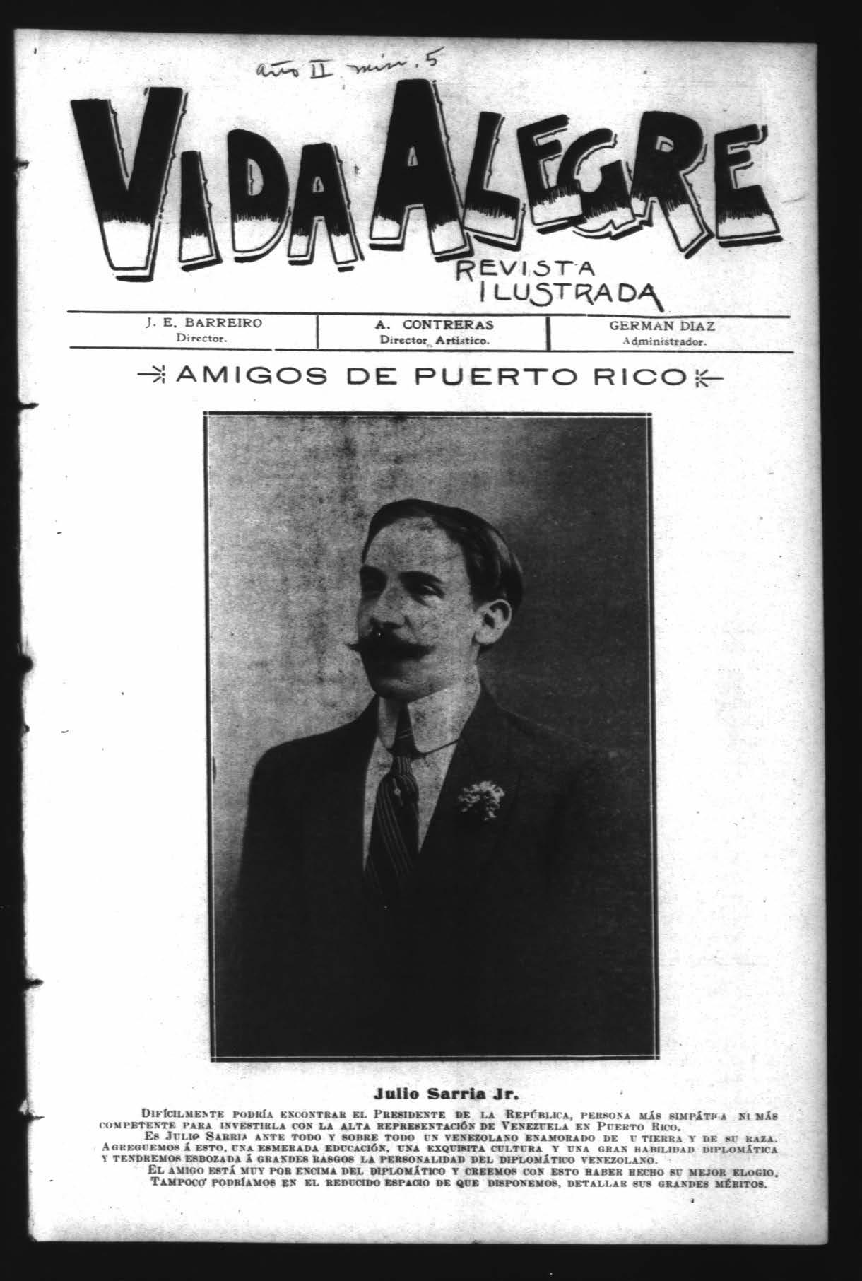 Es JuLIS SARRIA ANTE TODO Y SOBRE TODO UN VENEZOLANO ENAMORADO DE U TIERRA Y DE SU RAZA. AGREGUEMOS Á ESTO, UNA ESMERADA EDI'('ACIÓS UNA EXQUISITA CULTURA Y UNA GRAN HABILIDAD DIPLOMÁTICA Y TENDREMOS ESBOZADA Á GRAXDES RASGOS LA PERSONALIDAD DEL DIPLOMÁTICO VENEZOLANO. EL AMIGO ESTÁ MUY POR ENCIMA DEL DIPLOMÁTICO Y CREEMOS CON ESTO HABER HECHO SU MEJOR ELOGIO, TAMPOCO' PODRÍAMOS EN EL REDUCIDO ESPACIO DE QUE DISPONEMOS, DETALLAR SUS GRANDES MÉRITOS,