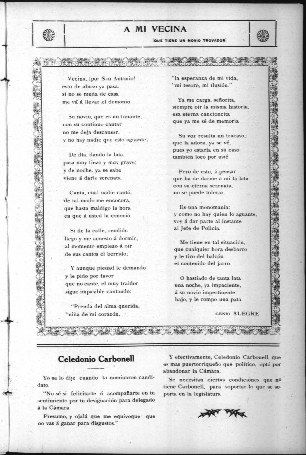 Y efectivamente, Celedonio Carbonell, que es mas puertorriqueño que político, optó por abandonar la Cámara.