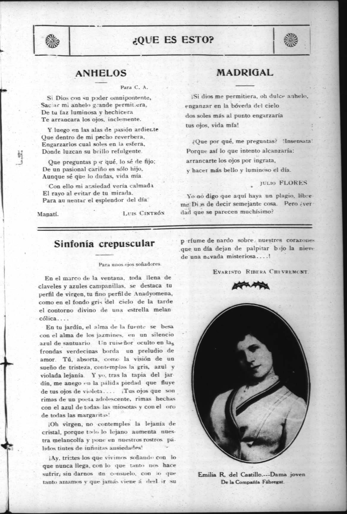 Emilia R, del Castillo.---Dama joven De la Compañía Fábregat.