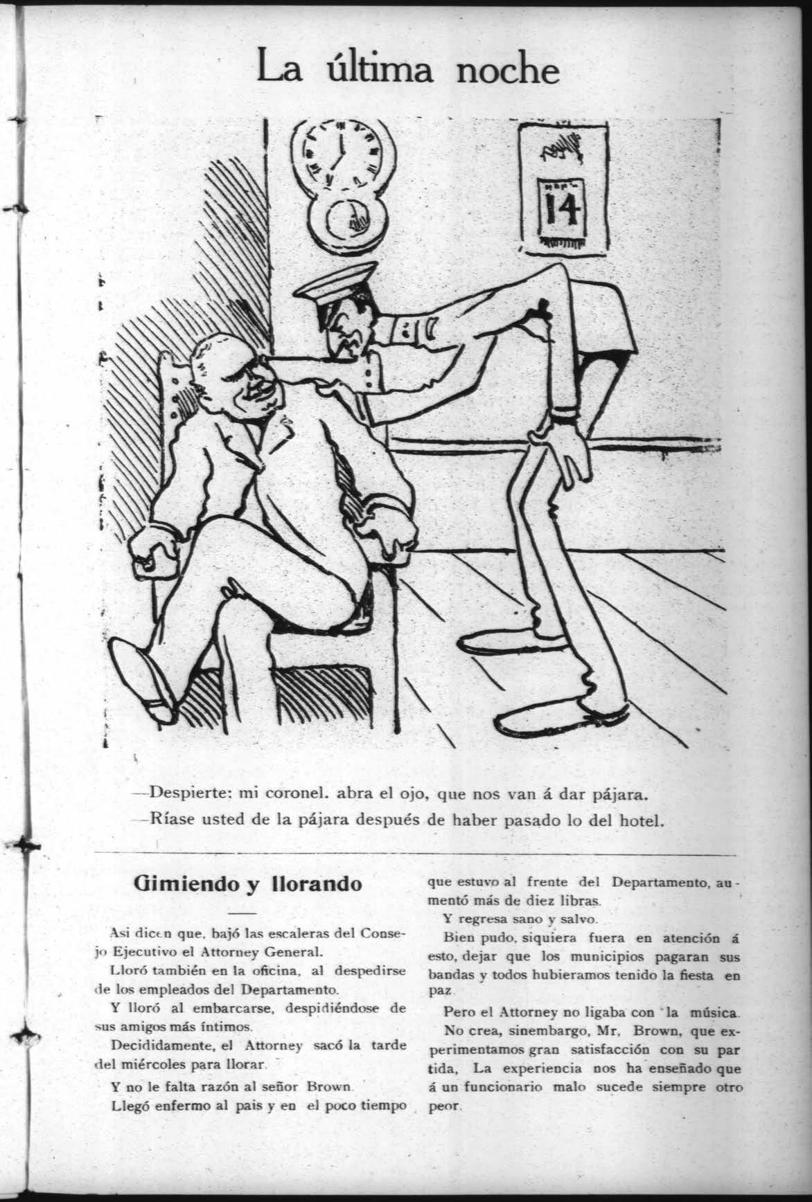 Despierte: mi coronel. abra el ojo, que nos van á dar pájara.
