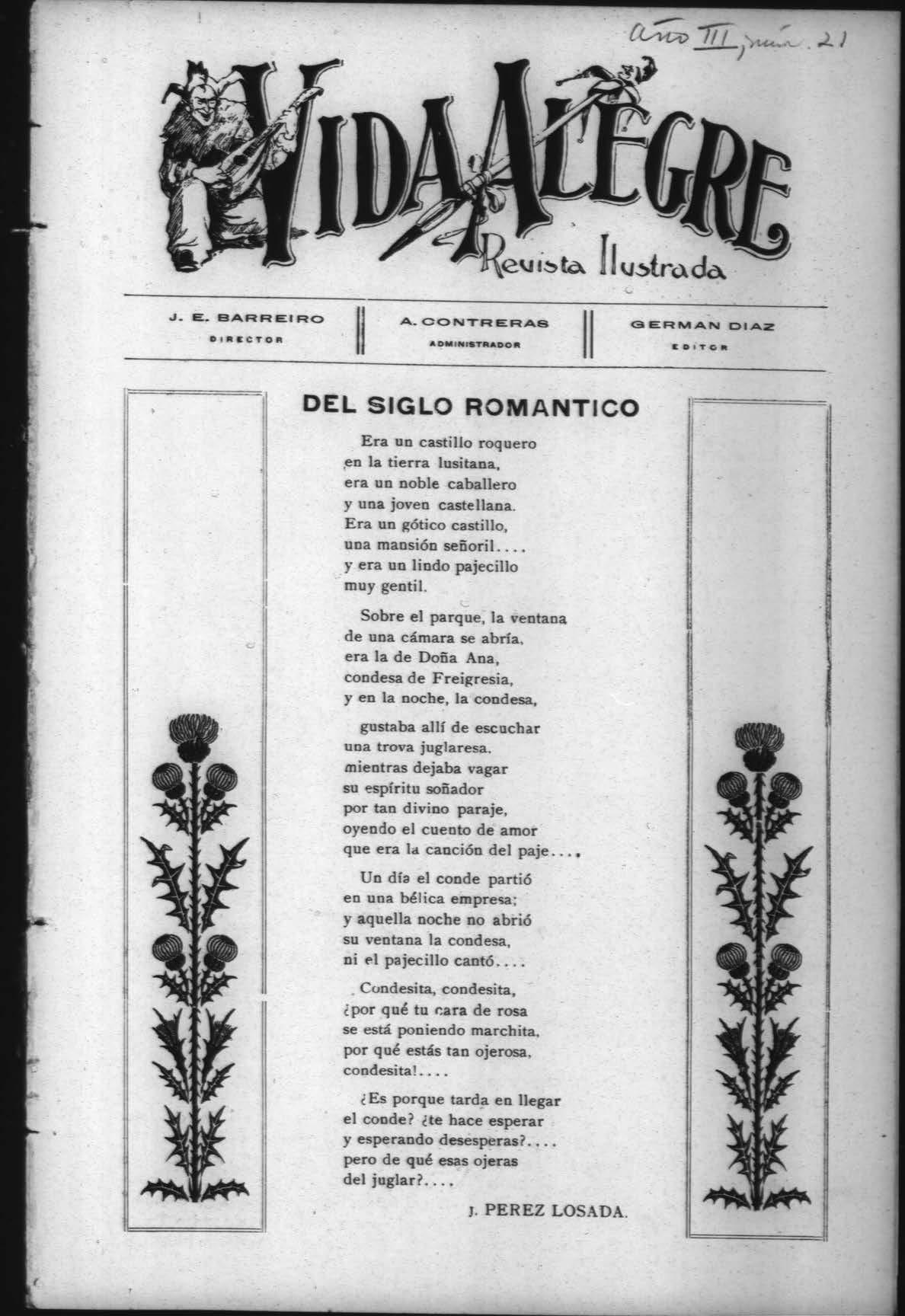 gustaba allí de escuchar una trova juglaresa. mientras dejaba vagar su espíritu soñador por tan divino paraje, oyendo el cuento de amor que era la canción del paje..., Un día el conde partió en una bélica empresa; | y aquella noche no abrió I su ventana la condesa, 1[ ni el pajecillo cantó.... ll Condesita, condesita, | ¿por qué tu rara de rosa j1 se está poniendo marchita, por qué estás tan ojerosa, condesita!....