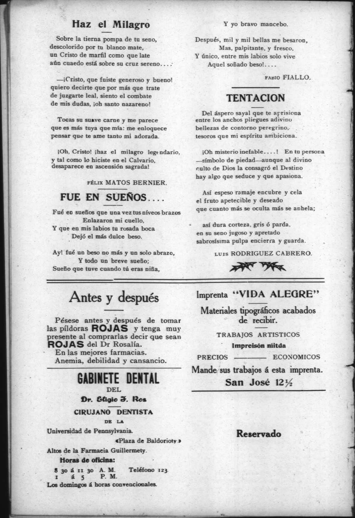 Esta simpática revisti habanera celeb:ó con una fiesta espléndida, el segundo aniver- sario de su fundación, á la que concurrieron los elemensos más distinguidos de la Habaná. Y en la fiesth de Bohemia al lado del champagne Codorniú y del vino blanco "Tres Rios, figuró, haciendo honor á Puerto, Rico, la famosa agua mCiento cincuenta comensales, periodistss y escritores en su mayoría, llenaron la clegante galería de Miramar reinando entre todos la mayor animación y fraternidad