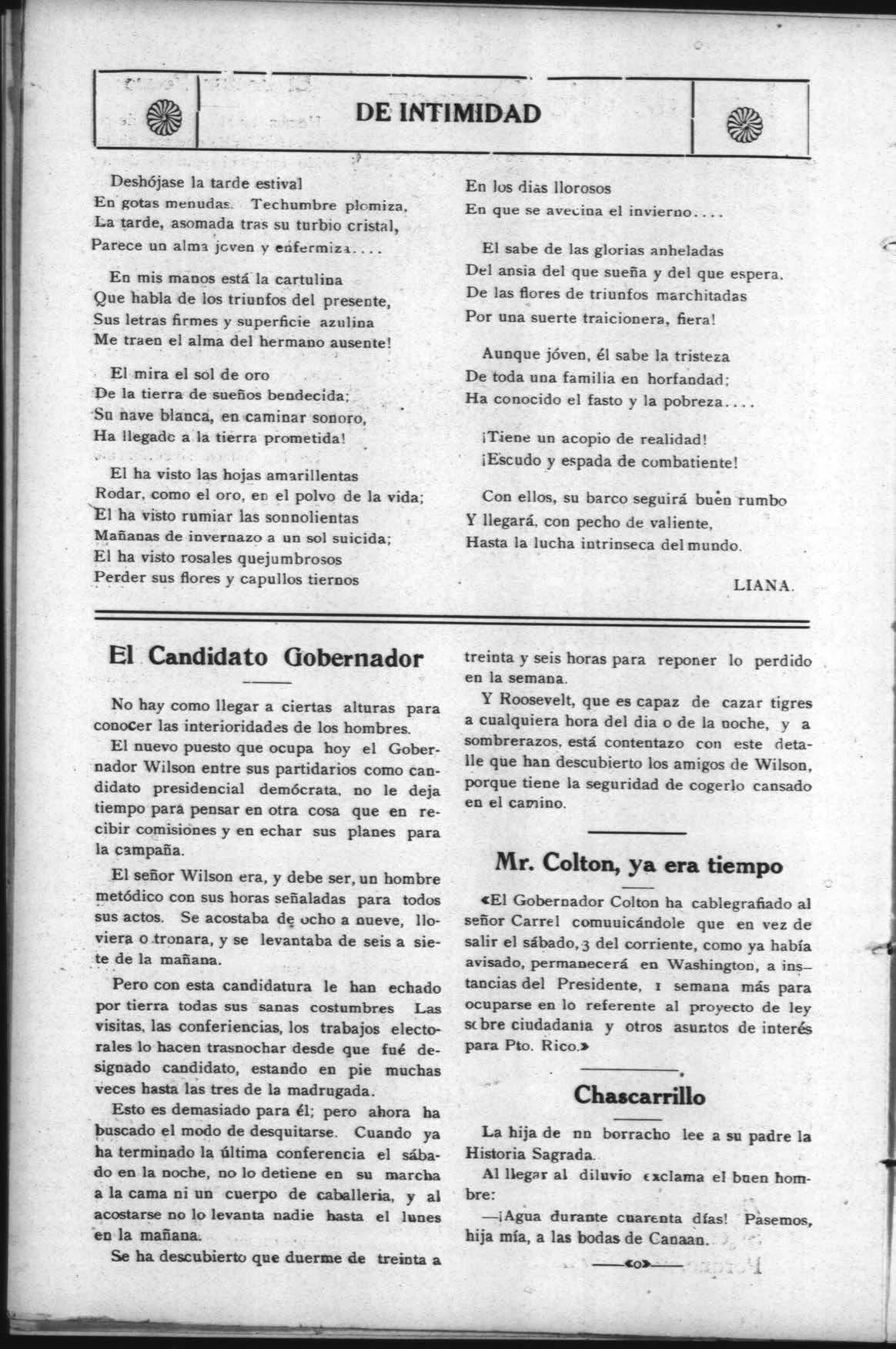 Pero hay algo que hace falta para la felicidad del pueblo portorriqueño y es que desean tener una personalidad entre los ciudadanos del mundo, personalidad de que hoy carecen Esto ha sido causa del malestar que reina. Y es natural: los Estados Unidos deben reco-